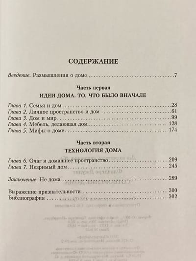 Judith Flanders, vēsturniece un visvairāk pārdoto Viktorijas laikmeta ēku un Viktorijas pilsētas autore, pārdomā, kā mājas un mājas koncepcija ir mainījusies pēdējo 500 gadu laikā. Izmantojot Eiropu un Ameriku kā piemēru, autors izseko, kā, pamazām uzlabojot savu māju, cilvēki ieguva arvien jaunus priekšmetus un beidzot ar noteiktām iezīmēm nokļuva mājā, kurā dzīvo mūsu laikabiedri. Pa “ceļu” no 16. līdz 21. gadsimtam Flandrija spilgti un aizraujoši stāsta par to, kad un kā parādījās pirmie galdi, krēsli un tualetes, kur sākotnēji “dzīvoja” gultas un kāpēc cilvēki ikdienā ieviesa aizkarus un galdautus, kā arī daudzus citus sadzīves priekšmetus. Autore īpašu uzmanību pievērš tam, kā tika noslēgtas laulības un veidotas ģimenes attiecības, kā tika audzināti bērni un kā tie tika ģērbti. Nu, autores galvenā doma ir tāda, ka mājas ir ļoti īpaša, atsevišķa vieta, kur mēs piederam tikai sev un varam būt tikai mēs paši.