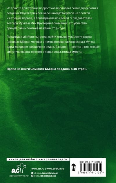 Septiņpadsmit gadus veca meitene pazūd no patversmes grūtībās nonākušiem pusaudžiem. Trīs mēnešus vēlāk viņu atrod mirušu uz putnu spalvu gultas, svecīšu pentagrammā. Izmeklētājiem Holgeram Munham un Mijai Krūgerei nav šaubu: tā ir slepkavība, turklāt ļoti līdzīga kādam rituālam.