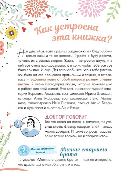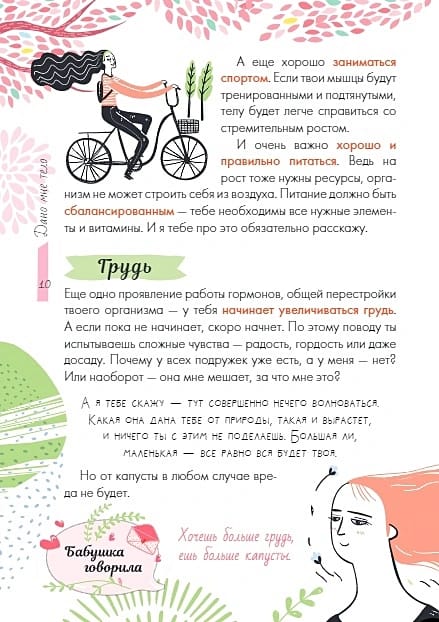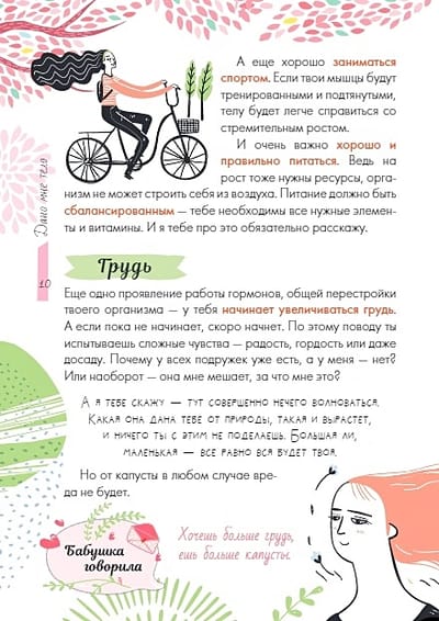 Šī grāmata ir rakstīta īpaši pusaugu meitenēm, un tā ir lasāma šajā grūtajā periodā, kad meitene no bērna kļūst par meiteni, jaunu un skaistu sievieti. Noderīgus slavenās aktrises Nonnas Grišajevas padomus, ko viņa sniedz savai meitai, papildina ārsta, fitnesa trenera, stilista ieteikumi. Spilgtas, mūsdienīgas ilustrācijas lieliski apvienotas ar slavenās aktrises sirsnīgo, sirsnīgo tekstu, kurā skarti visi augošas pusaudzes meitenes "sāpju punkti".