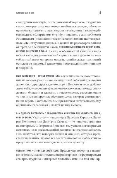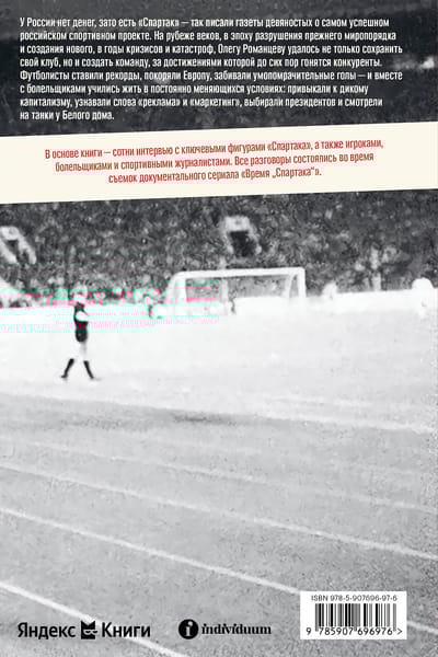 Krievijai nav naudas, bet ir Spartak – tā deviņdesmitajos gados rakstīja laikraksti par veiksmīgāko Krievijas sporta projektu. Gadsimtu mijā, vecās pasaules kārtības iznīcināšanas un jaunas radīšanas laikmetā, krīžu un katastrofu gados Oļegam Romancevam izdevās ne tikai saglabāt savu klubu, bet arī izveidot komandu, kuras sasniegumus joprojām dzenā konkurenti. Futbolisti uzstādīja rekordus, iekaroja Eiropu, guva prātīgus vārtus – un kopā ar līdzjutējiem iemācījās dzīvot nemitīgi mainīgos apstākļos: pieraduši pie mežonīga kapitālisma, iemācījušies vārdus “reklāma” un “mārketings”, ievēlēja prezidentus un skatījās uz tankiem Baltajā namā.