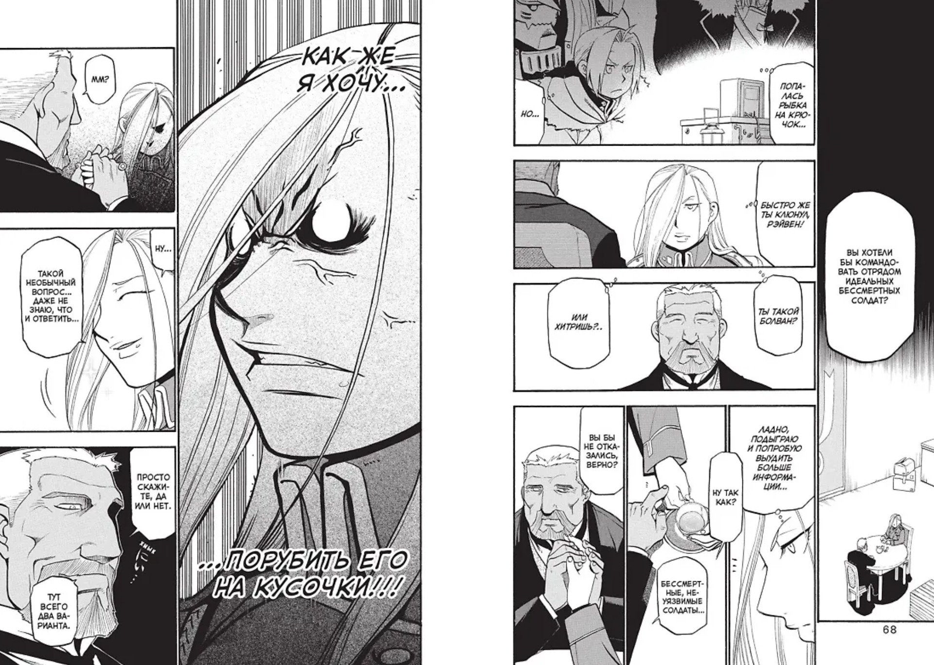 Slinkums izpilda Tēva pavēles, un viņa radītais aplis ir gandrīz noslēdzies. Amestris ir briesmās! Sārtais alķīmiķis Kimblī un ģenerālleitnants Reivens ierodas Brigsa cietoksnī, lai izteiktu Olīvijai Ārmstrongai piedāvājumu, no kura, viņuprāt, viņa nevar atteikties, un viņa labprāt pievienosies viņu pusei. Rezultāts viņus pārsteigs. Arī Elriku brāļus gaida pārsteigums: Vinrija atgriežas Brigsa cietoksnī.