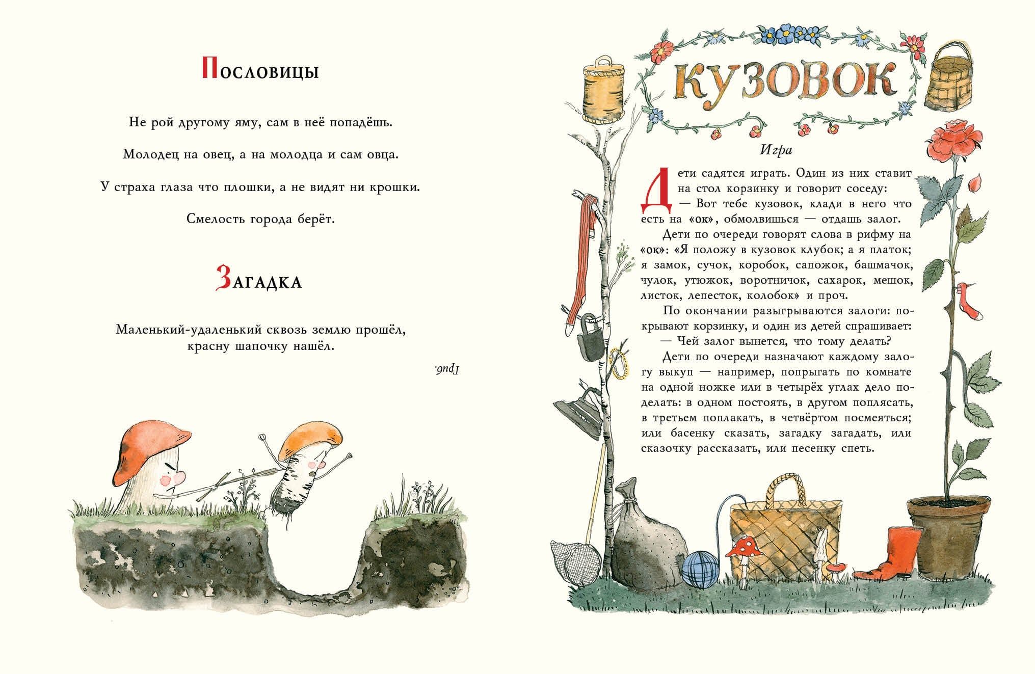 Šajā brīnišķīgajā kolekcijā ietilpst pasakas, spēles, mīklas, sakāmvārdi, mēle-in-čeki. Mazie lasītāji uzzinās, kāpēc sēnes nolēma cīnīties ar ogām, kā gudrs lāča cilvēks pārspēja gudrību, kā suns Bugs izglāba Snow Maiden no meža dzīvniekiem, un meitene Baby – mazs brālis no Baba Yaga. Jūs iepazīsieties ar spēlēm, ko viņu vienaudži spēlēja pirms vairāk nekā gadsimta. Un mīklas, sakāmvārdi un mēle-twisting palīdzēs uzzināt dziļāk vietējo runu.