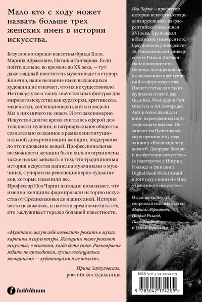Profesors Noa Čārnijs spilgti parāda, ka tieši sievietes veidoja mākslas vēsturi no viduslaikiem līdz mūsdienām. Vēsture bieži ir tikusi sagrozīta, un ir pienācis laiks atzīt tās, kuras ir pelnījušas daudz lielāku atzinību.