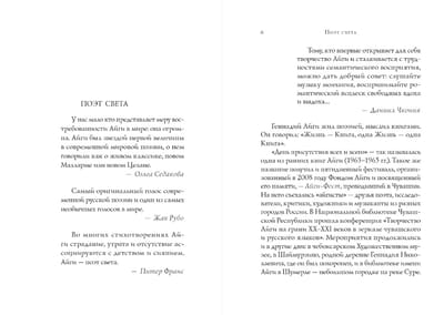 Genādijs Aigi (1934–2006), pasaulslavens dzejnieks un tulkotājs, kas rakstīja čuvašu un krievu valodā; nacionālu un starptautisku apbalvojumu laureāts: Francijas Akadēmijas (1972), A. Belija (1987), F. Petrarkas (1993), Strugas Dzejas vakaru Zelta kroņa (Maķedonija, 1993), B. Pasternaka (2000, pirmais laureāts) un citu. Mākslas un literatūras ordeņa komandieris (1998). Čuvašu Republikas tautas dzejnieks (1994). Vairākkārt nominēts Nobela prēmijai. Šajā anotētajā atlasīto darbu izdevumā iekļauti dzejoļi no 1954. līdz 2003. gadam, grāmatas “Paklanīšanās dziedāšanai” (Variācijas par Volgas apgabala tautasdziesmu tēmām), “Silvijas pasaule” un raksti par krievu avangarda kulta figūrām: V. Majakovski, V. Hļebņikovu, A. Kručeņiku, P. Filonovu, E. Guro un citiem. Grāmata tiek izdota, atzīmējot G. N. Aigi 90. dzimšanas gadadienu.