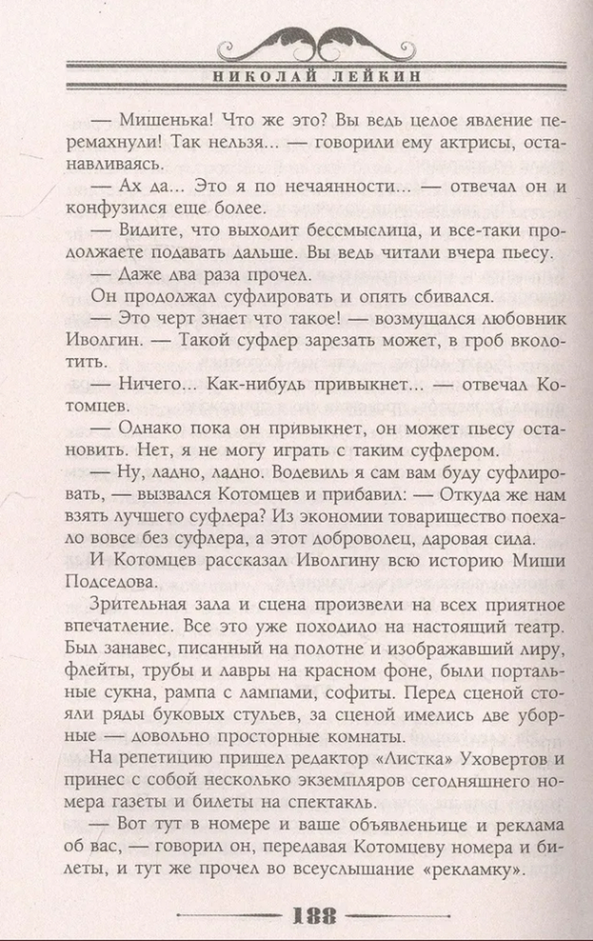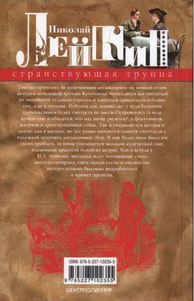 Tā kā Kotomceva nelielās trupas aktieriem neizdevās nodrošināt izrādes ziemas sezonā, viņiem klājas grūti. Viņi ir spiesti klejot pa mazām provinces pilsētiņām, cenšoties piesaistīt auditoriju tur, nevis galvaspilsētā. Tomēr šī auditorija labprātāk vērotu burvju māksliniekus, klaunus un apmācītus suņus, nevis Ostrovska lugas (un tirgotāji apvainotos par viņu izsmieklu). Tā nu aktieri nonāk līdz kaklam parādos, tomēr viņi joprojām cenšas iestudēt izrādes, cerot piesaistīt pietiekamus ieņēmumus. It kā ar viņu pašu problēmām nepietiktu, viņiem līdzi dodas jauns tirgotāja dēls, kuru savaldzina vienas no aktrisēm skaistums. Kā vienmēr ar N. A. Leikinu, lasītājiem tiek piedāvāts meistarīga satīriķa izsmalcinātais stils, smiekli caur asarām un daudz aizraujošu ikdienas detaļu un laika zīmju.