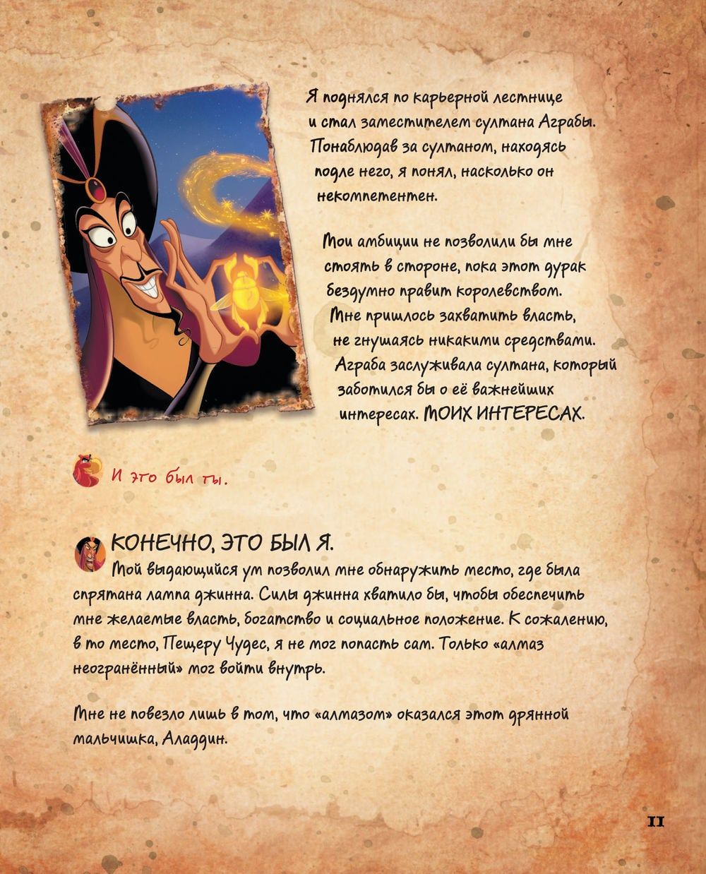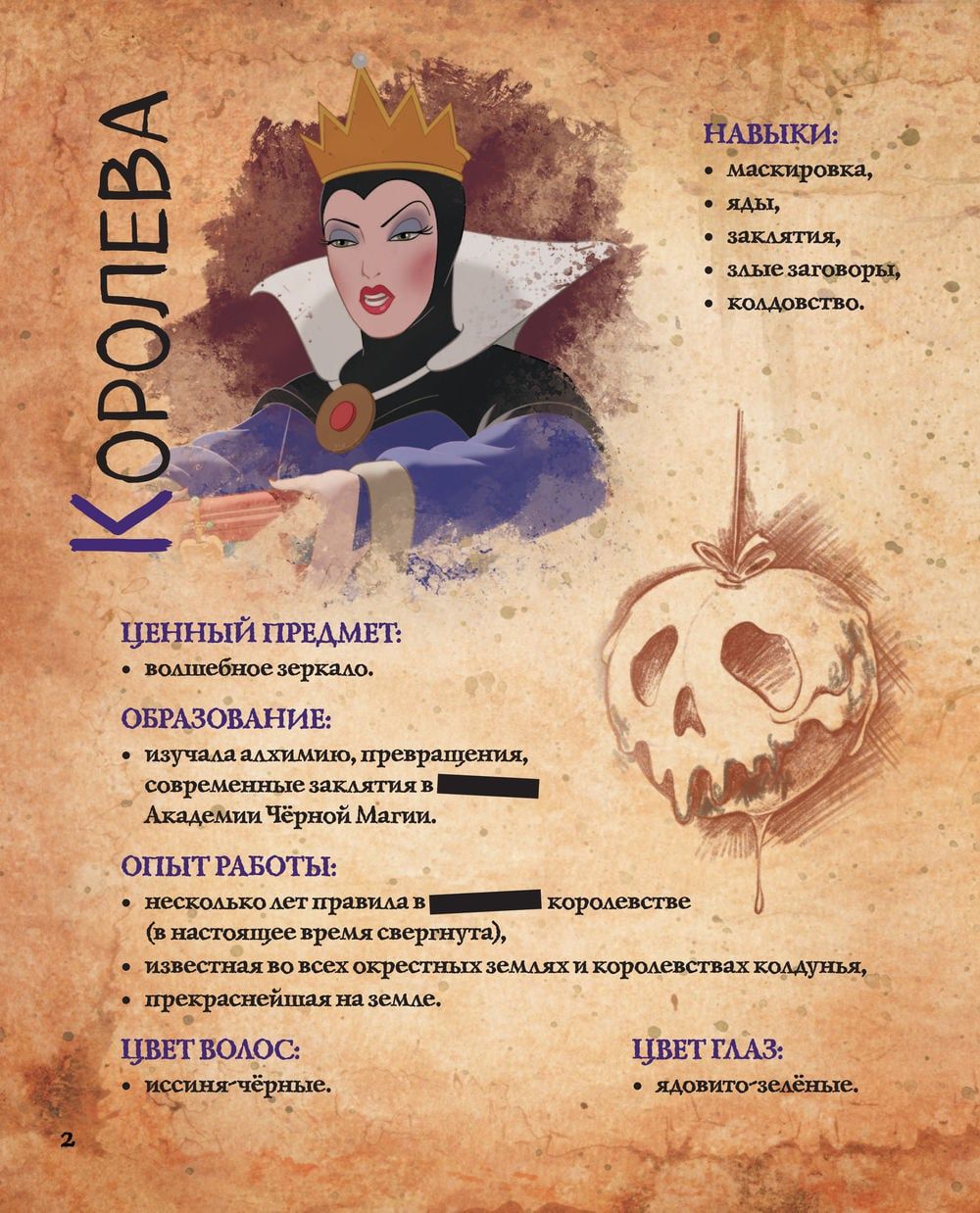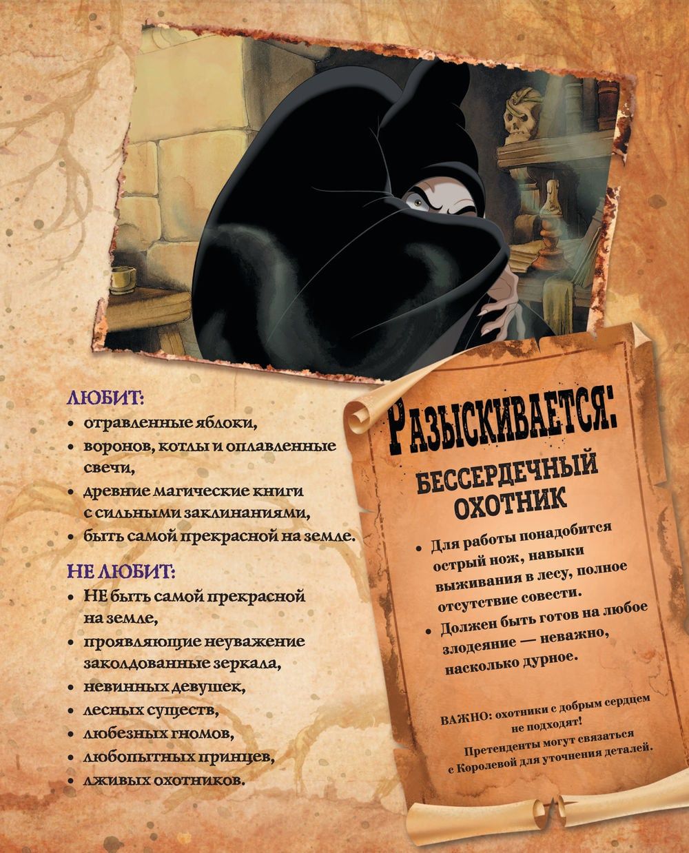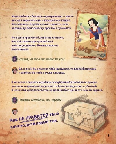 Disney ļaundari, kas tie ir? Ko viņi spēj, ar ko viņi lepojas, kādus noslēpumus viņi glabā? Šajā grāmatā lasītājus gaida visi Disneja slaveno negatīvo varoņu ļaunākie noslēpumi. Karaliene no "Sniegbaltītes", Džafars, Ursula, Māte Gotela, lēdija Tremeina, kā arī daudzi citi atcerēsies pagātni un dalīsies ar saviem briesmīgākajiem noslēpumiem, kas līdz šim bija zināmi tikai spogulim, papagailim, jūrai, zelta puķei un kaitīgajam kaķim.