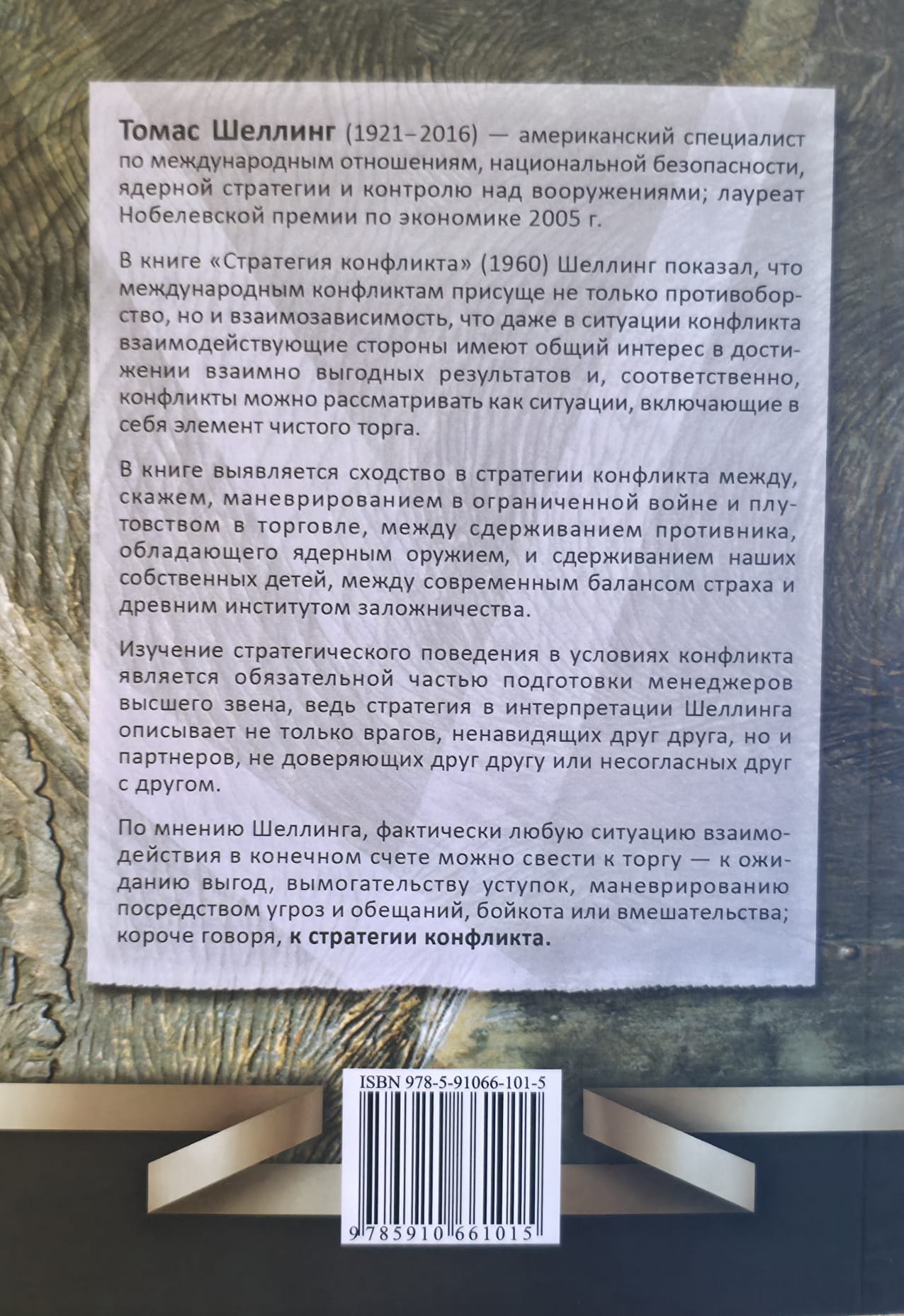 Idejas, par kurām Šellings saņēma Nobela prēmiju, pirmo reizi tika formulētas viņa 1960. gada grāmatā "Konflikta stratēģija". Viņš parādīja, ka starptautiskiem konfliktiem raksturīga ne tikai konfrontācija, bet arī savstarpēja atkarība, ka pat konfliktā mijiedarbībā iesaistītajām pusēm ir kopīgas intereses sasniegt abpusēji izdevīgus rezultātus un ka attiecīgi konfliktus var uzskatīt par situācijām, kas galu galā ietver tīras kaulēšanās elementu.