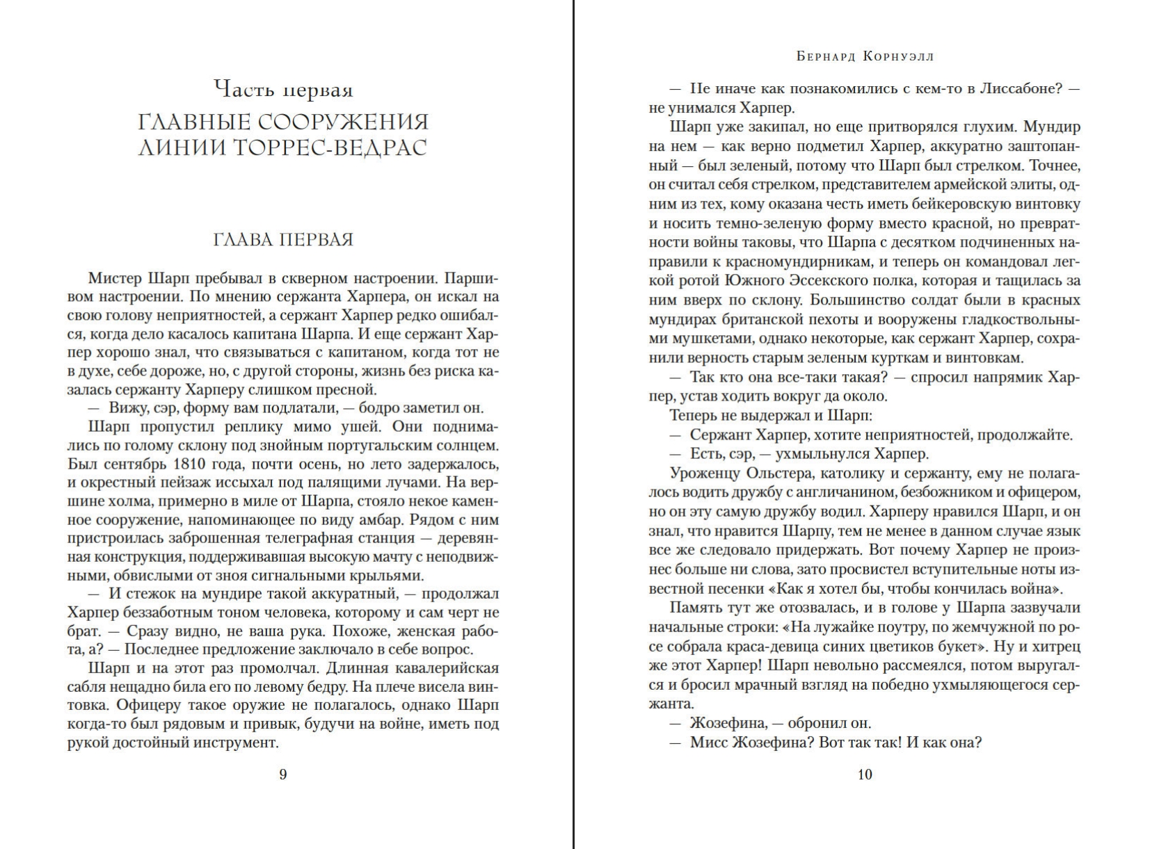 Deviņpadsmitā gadsimta sākumā Britu impērija stiepās no Lamanša līdz Indijas okeānam. Viens no šīs impērijas arhitektiem, kurš piedalījās visos Anglijas karos tajā laikmetā, bija strēlnieks Šārps. Romānā "Strēlnieka Šārpa bēgšana" Napoleona uzvarošās armijas Portugāles ieņemšana ir atkarīga tikai no varoņa. Šārpa dzīvība karājas mata galā, briesmas draud no visām pusēm. Šārpam būs jācīnās ar skaudīgiem un nekompetentiem augstākstāvošiem virsniekiem, viltus sabiedrotajiem, kas jebkurā brīdī ir gatavi viņu nodot, un nodevīgu ienaidnieku. Romānā "Strēlnieka Šārpa niknums" britu armija stāv uz sakāves robežas. Spānija ir nonākusi Francijas pakļautībā. Tikai Kadisa paliek neiekarota, un aiz tās mūriem notiek viltīga diplomātiska spēle. Vienīgā britu cerība ir Šārps un viņa biedri, kuri atsakās atzīt sakāvi.