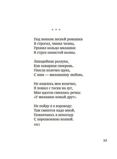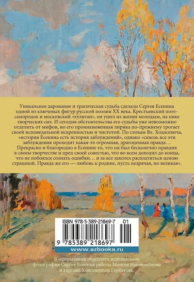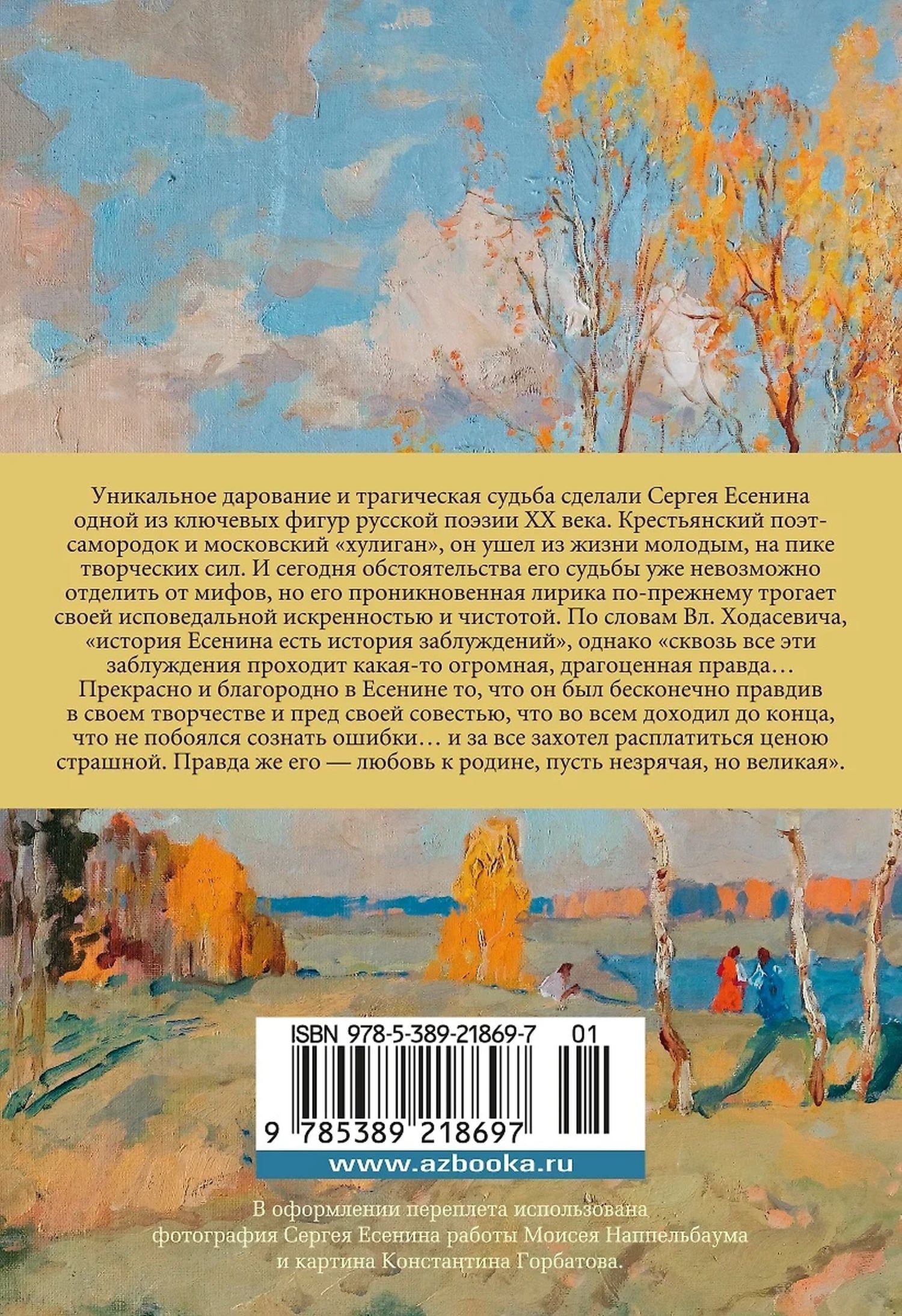 Sergeja Jesenina unikālais talants un traģiskais liktenis padarīja viņu par vienu no nozīmīgākajām 20. gadsimta krievu dzejas figūrām. Būdams zemnieku dzejnieks un Maskavas "huligāns", viņš aizgāja no dzīves jauns, savu radošo spēju pilnbriedā. Un šodien viņa likteņa apstākļus vairs nevar nošķirt no mītiem, bet viņa sirsnīgā lirika joprojām aizkustina ar savu izliecisko sirsnību un tīrību. Pēc V. Hodaseviča domām, "Ešenina vēsture ir maldīgu priekšstatu vēsture", bet "caur visiem šiem maldīgajiem priekšstatiem ir kāda milzīga, vērtīga patiesība ...". Skaisti un cēli Eseninā, ka viņš bija bezgalīgi patiesīgs savā darbā un savas sirdsapziņas priekšā, ka visā nāca līdz galam, ka nebaidījās atzīt kļūdas ... un par visu bija gatavs maksāt briesmīgu cenu. Viņa patiesība ir viņa mīlestība pret dzimteni, kaut arī akla, bet liela". Šajā izdevumā apkopoti Sergeja Jesenina dzejoļi un "mazie dzejoļi", gan plaši pazīstami, gan tie, kas netika iekļauti "galvenajā krājumā", kā arī dzejoļi "Pugačova", "Viltību zeme" un citi.