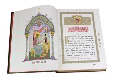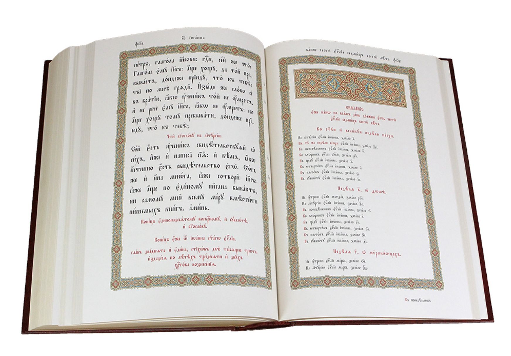 Šis izdevums turpina jauno datorsalikumā salikto baznīcas slāvu liturģisko grāmatu sēriju. Tas ir balstīts uz liturģiskā evaņģēlija tekstu, kas iespiests Maskavas sinodaliskajā tipogrāfijā 1905. gadā. Grāmatas kompozīcija atbilst tradicionālajiem Svētā evaņģēlija izdevumiem, kas paredzēti lasīšanai dievkalpojumos.