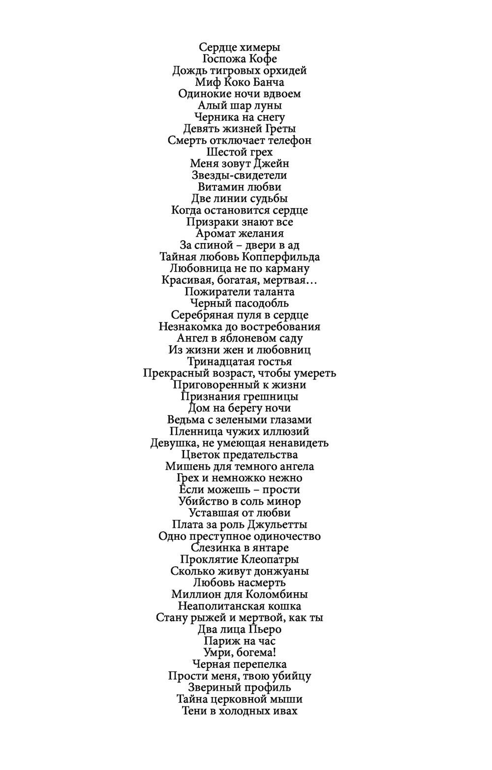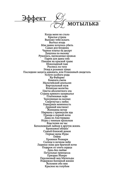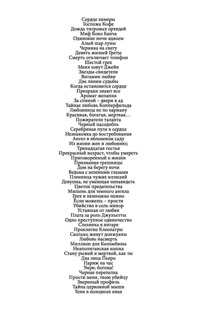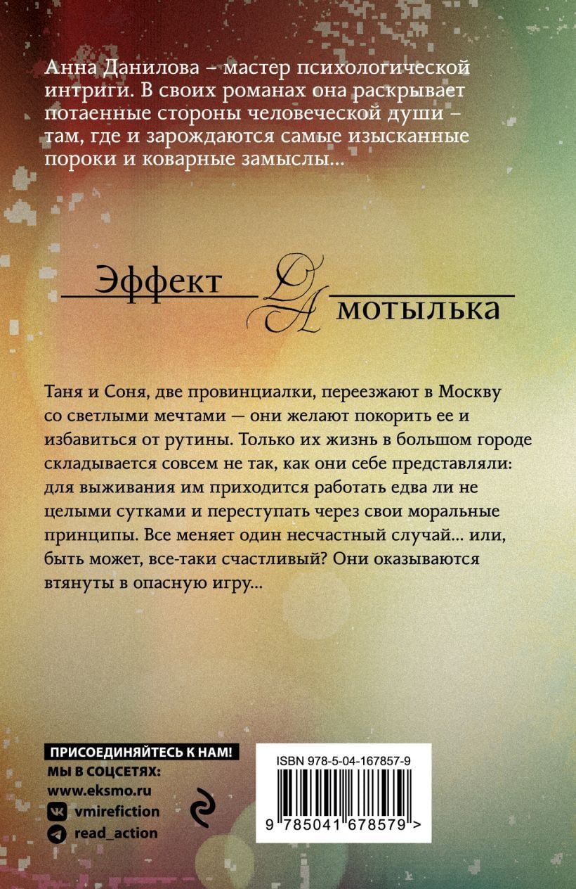 Atzītās psiholoģiskā detektīva meistares Annas Daņilovas romantikas un kriminālromāni ar erotikas elementiem. Annas Daņilovas grāmatu kopējā tirāža ir 4,5 miljoni eksemplāru!