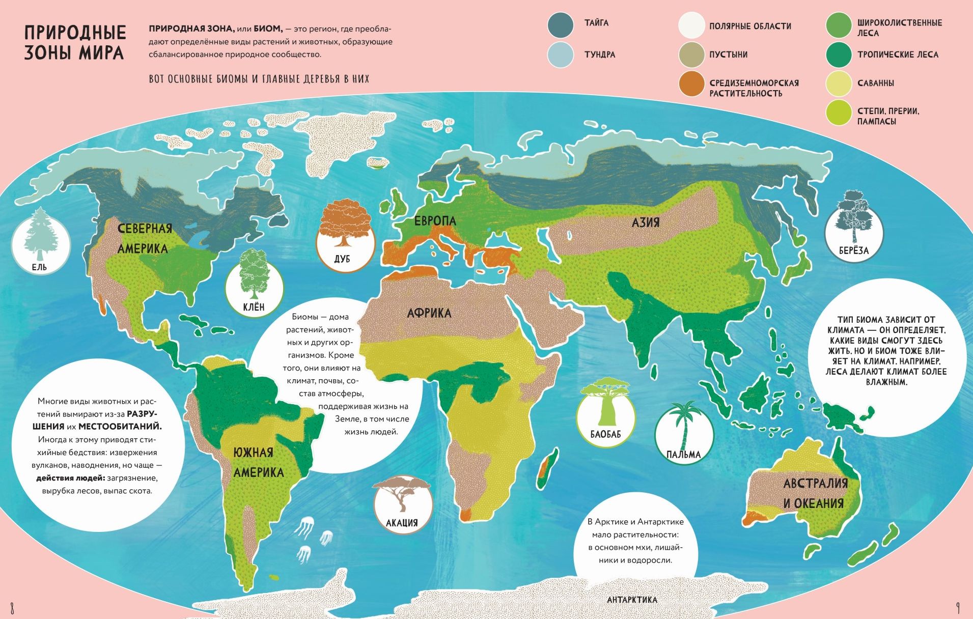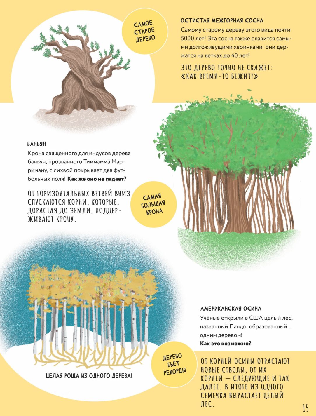 Jūs arī uzzināsiet, kā atpazīt kokus un aprakstīt nepazīstamu koku, kā koki vairojas, kā tie izplata sēklas, kuri dzīvnieki nevar dzīvot bez kokiem un kā koki ir atkarīgi no dzīvniekiem. Jūs lasīsiet par to, kā koki elpo, barojas un kas notiek pēc to nāves. Un, protams, grāmatā liela uzmanība tiek pievērsta tam, kā koki palīdz mums, cilvēkiem, un visai planētai: tie ne tikai ražo skābekli, bet arī aizsargā augsni, regulē temperatūru un kalpo zinātnei, mākslai un reliģijai. Tevi gaida aizraujošs stāsts par koku dzīvi un daudz neticamu (bet pilnīgi patiesu!) faktu!
