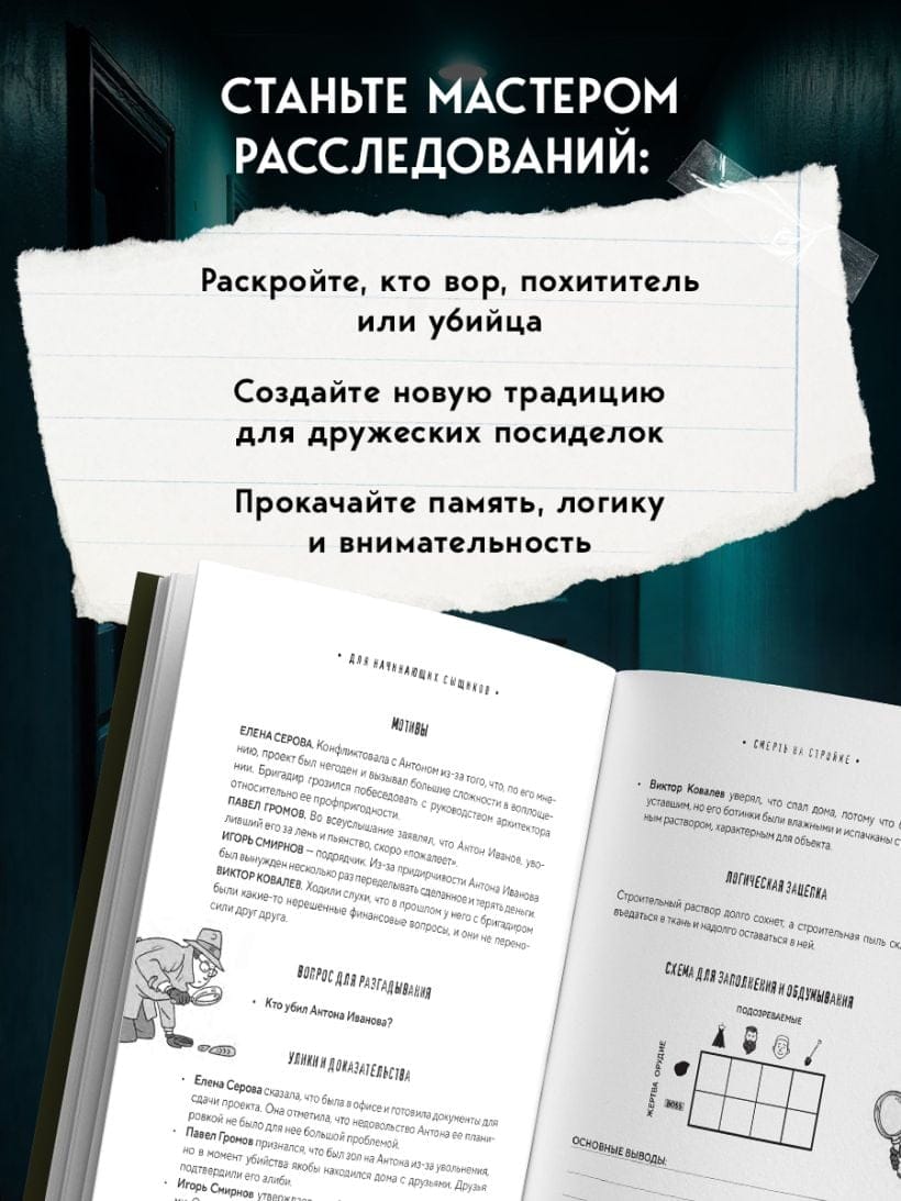 Uzlabojiet savu loģiku, risinot sarežģītas lietas: izpētiet katra aizdomās turētā motīvus, pievērsiet uzmanību norādēm un pierādījumiem, salīdziniet faktus, aizpildiet deduktīvās tabulas — un jūs noteikti nonāksiet pie pareizā secinājuma!