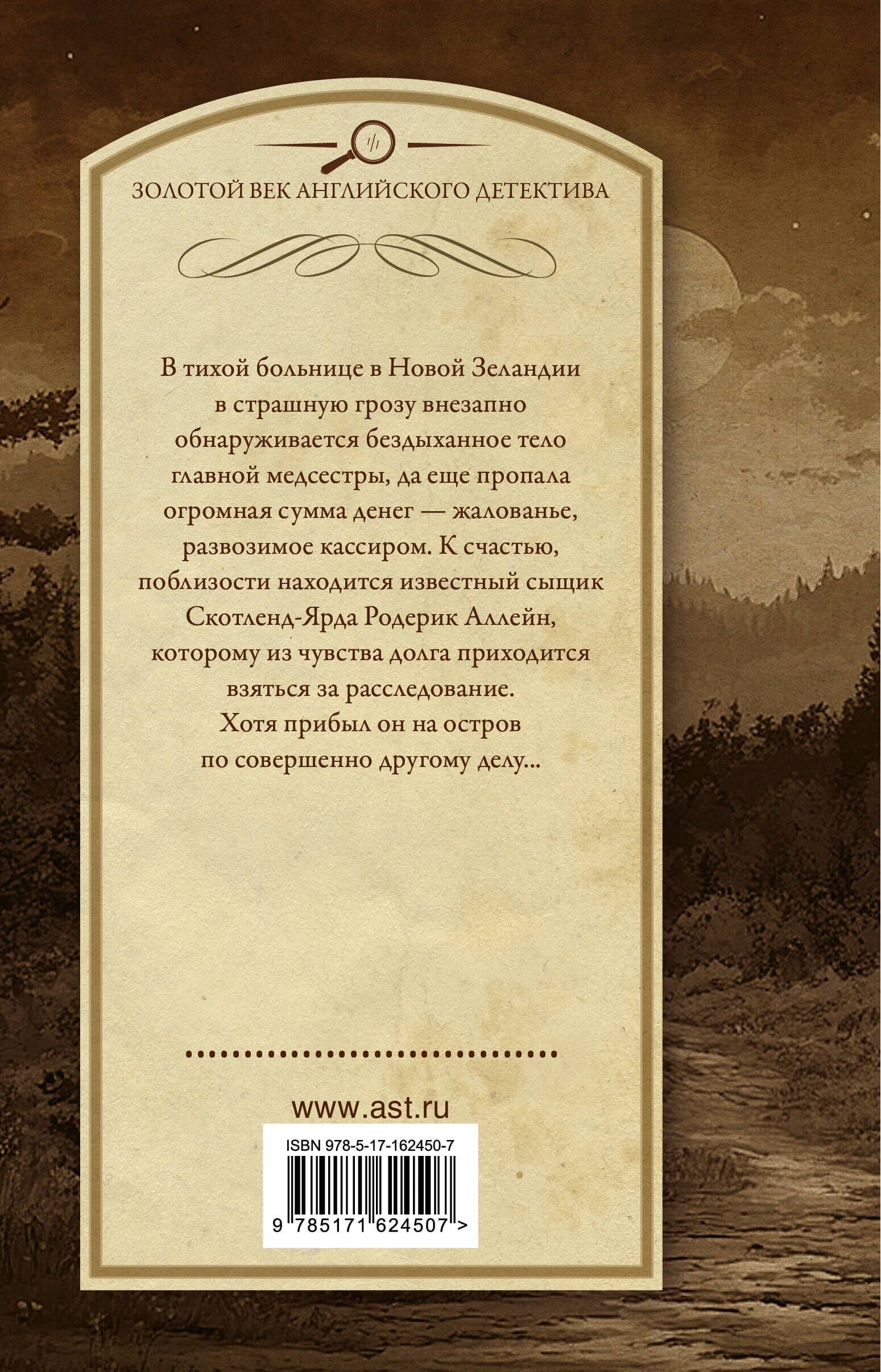 Klusā Jaunzēlandes slimnīcā šausmīga pērkona negaisa laikā pēkšņi tiek atklāts nedzīvs galvenās māsas ķermenis, un pazudusi milzīga naudas summa - kasieres piegādātā alga. Par laimi, netālu atrodas slavenais Skotlendjarda detektīvs Roderiks Aljēns un pienākuma apziņas dēļ ir spiests uzņemties izmeklēšanu. Lai gan viņš ieradās salā pavisam cita iemesla dēļ...