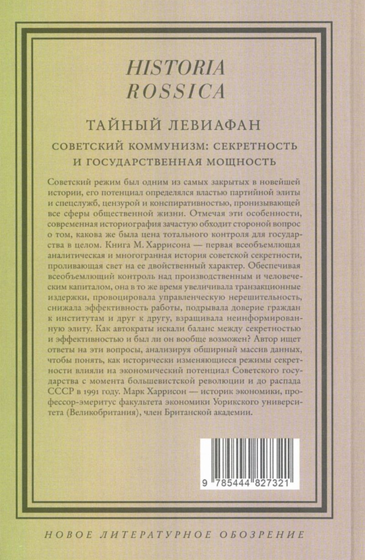 M. Harisona grāmata ir pirmā visaptverošā, analītiskā un daudzpusīgā padomju slepenības vēsture, kas izgaismo tās duālo dabu. Nodrošinot visaptverošu kontroli pār ražošanas un cilvēkkapitālu, tā vienlaikus palielināja darījumu izmaksas, izraisīja vadības neizlēmību, samazināja darbības efektivitāti, mazināja pilsoņu uzticēšanos institūcijām un vienam otram, kā arī veicināja neinformētas elites veidošanos. Kā autokrāti meklēja līdzsvaru starp slepenību un efektivitāti, un vai šāds līdzsvars vispār bija iespējams? Autors meklē atbildes uz šiem jautājumiem, analizējot plašu datu klāstu, lai izprastu, kā vēsturiski mainīgie slepenības režīmi ietekmēja Padomju valsts ekonomisko potenciālu no boļševiku revolūcijas līdz pat PSRS sabrukumam 1991. gadā.