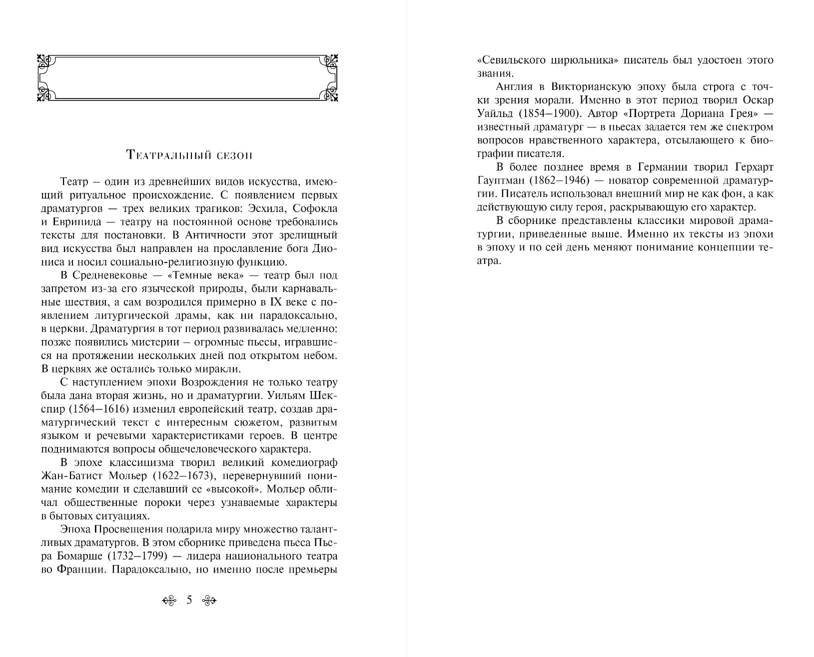 Ar izsmalcinātu humoru un nemainīgu asprātību Oskars Vailds iedziļinās Viktorijas laikmeta pārvērtībās. Viljama Šekspīra varoņi dzīvo, tiek galā ar cilvēciskām kaislībām. Pjērs Boamaršē ienes krājumā franču komēdijas graciozitāti un vieglumu, savukārt Hauptmanis demonstrē reālisma spēku. Šis krājums būs jūsu ceļvedis atzītu klasiķu ārzemju dramaturģijas pasaulē. Svarīgākās skolas mācību programmas lugas vienā grāmatā. Populārākās lugas, kas iestudētas visos teātros.