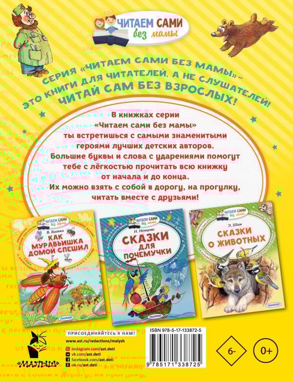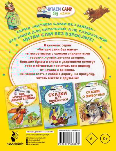 Grāmatā iekļautas Korneja Čukovska iemīļotākās bērnu pasakas - "Telefons", "Tarakanišče", "Zagtā saule", "Aibolīts", "Aibolīts un zvirbulis". Bērni ar prieku patstāvīgi lasīs šīs pasakas, jo ar grāmatu sēriju "Lasām bez mammas" to izdarīt ir tik vienkārši! Ērts formāts, lieli burti, vārdi ar akcentiem un brīnišķīgas krāsainas ilustrācijas padarīs lasīšanu par aizraujošu nodarbi. Sērijas "Lasām bez mammas" grāmatas var ņemt līdzi ceļā, pastaigā un lasīt kopā ar draugiem! Pirmsskolas vecumam.