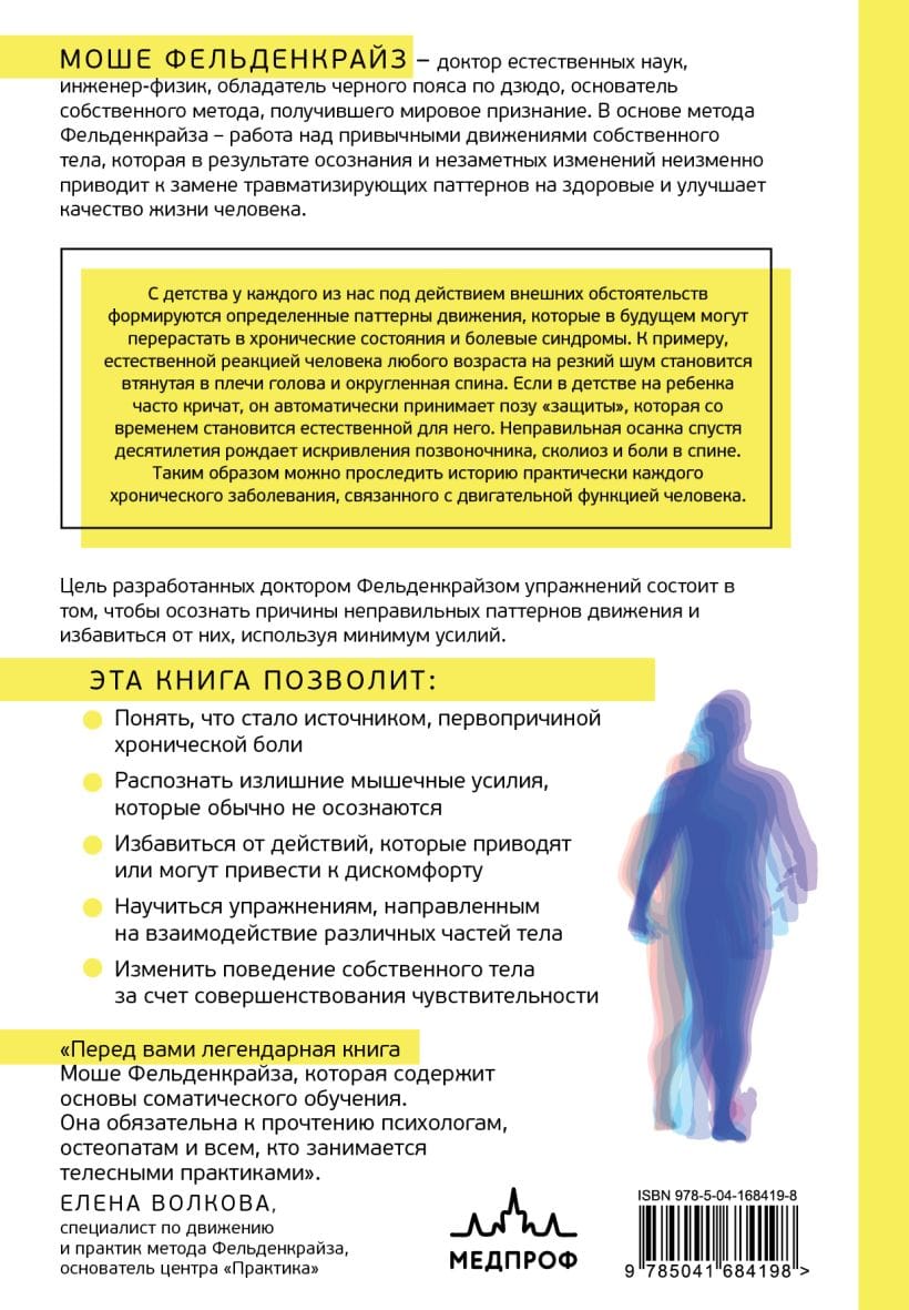 Pēc smagu traumu gūšanas un mēģinājumiem izārstēties no tām Moše Feldenkraiss pēkšņi apzinājās dziļo saikni starp miesas ciešanām un garīgo veselību. Atveseļojoties, viņš izdarīja revolucionārus atklājumus, kas vainagojās ar viņa vārdā nosauktās metodes izstrādi. Šajā grāmatā Feldenkraiss iedziļinās neirozinātnē, aizvēsturē, bērnu attīstībā, gravitācijā un antigravitācijā, refleksīvajā un iegūtajā uzvedībā, emociju, īpaši trauksmes, ietekmē uz stāju un, pats galvenais, ķermeņa un prāta nedalāmībā.
