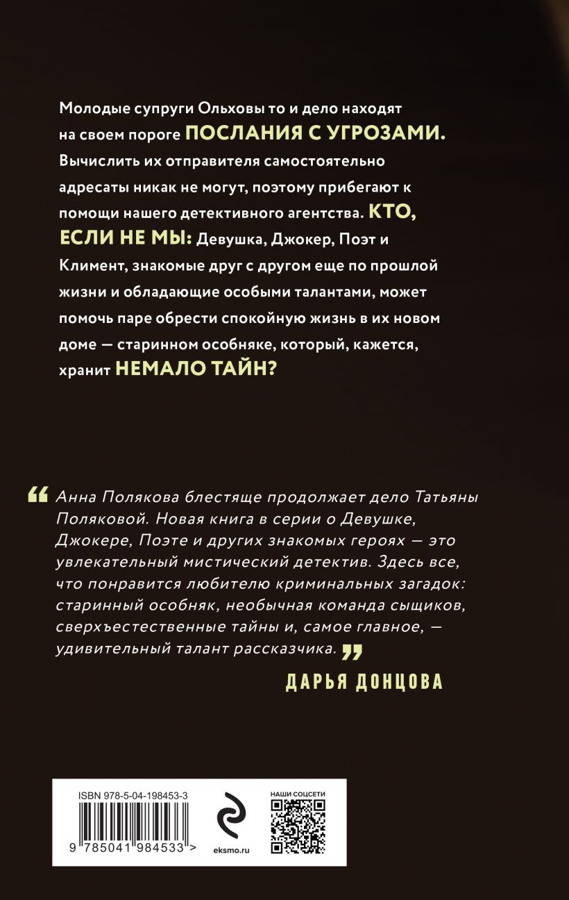 . Jaunais pāris Olhovs ik pa laikam uz sava nama sliekšņa atrod draudu vēstules. Adresāti paši nespēj identificēt to sūtītāju, tāpēc vēršas pēc palīdzības pie mūsu detektīvu aģentūras. Kurš, ja ne mēs - Meitene, Džokers, Dzejnieks un Kliments, kuri viens otru pazīst no iepriekšējām dzīvēm un kuriem piemīt īpaši talanti, var palīdzēt pārim atrast mierīgu dzīvi viņu jaunajā mājvietā - vecā muižā, kas, šķiet, glabā daudz noslēpumu?