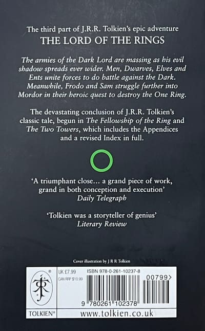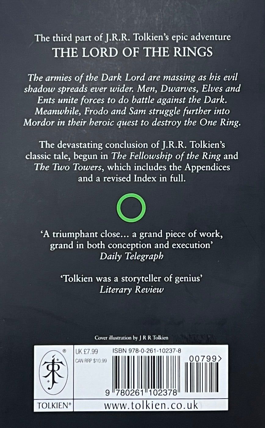J. R. R. Tolkīna klasiskā piedzīvojumu stāsta, kas aizsākās "Gredzena biedrībā" un "Divos torņos", postošais noslēgums.