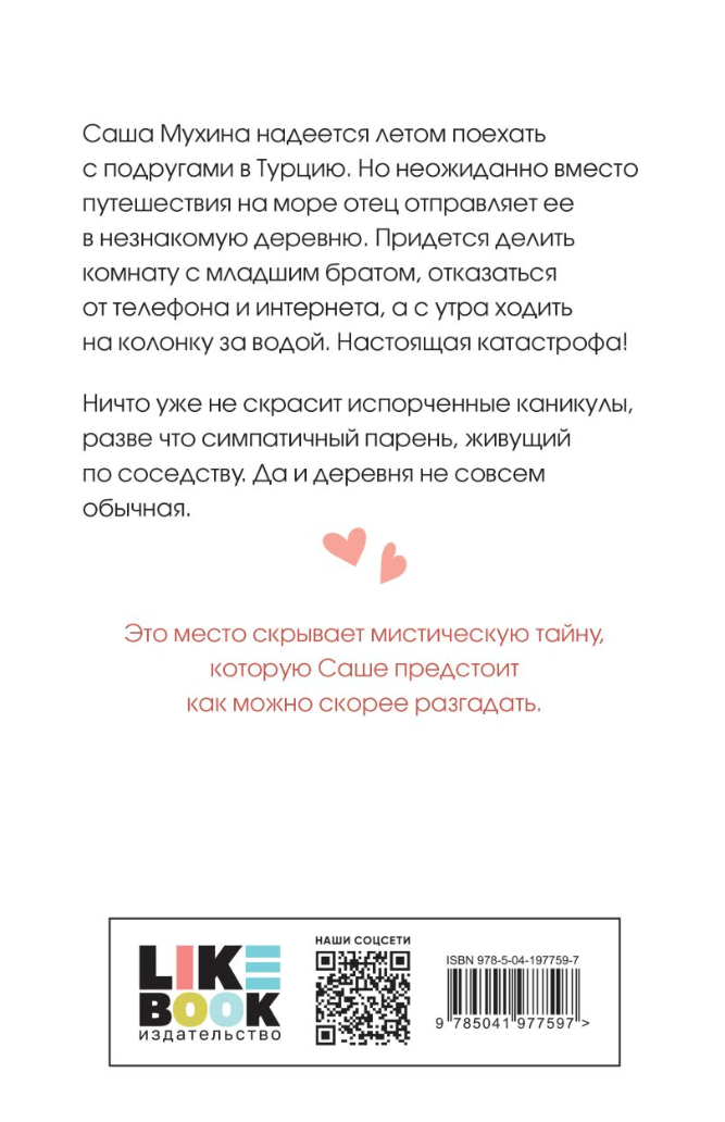 Nekas nespēs spodrināt sabojātās brīvdienas, izņemot simpātisko puisi, kurš dzīvo kaimiņos. Un ciemats nav gluži parasts. Šī vieta slēpj mistisku noslēpumu, kas Sašai pēc iespējas ātrāk jāatrisina.