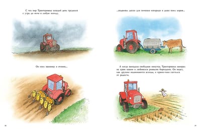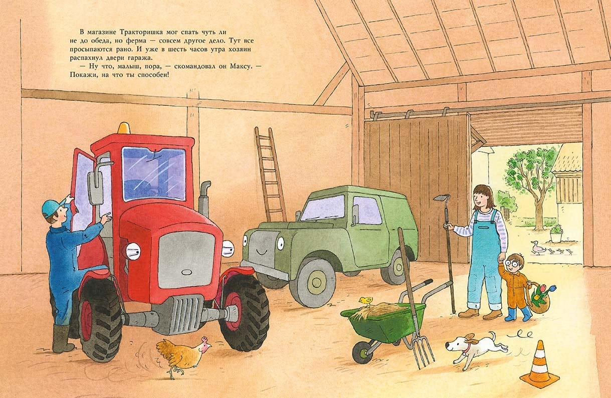 Mazais sarkanais traktoriņš - Traktoriška Max - ir parādījies pavisam nesen. Viņš tikko bija samontēts rūpnīcā un uzreiz nosūtīts pārdošanai lauksaimniecības tehnikas veikalam. "Žēl, ka viņi mani neiegādājās agrāk," Makss sapņoja. Viņš nevarēja sagaidīt, kad varēs nokļūt saimniecībā un sākt strādāt. Un kādu dienu viņa sapnis piepildījās. Saimniecības īpašnieks un viņa ģimene bija ļoti apmierināti ar traktoriņu. Sākumā Maksam pašam viss apkārt bija jaunums, taču viņš ātri pierada saimniecībā un drīz vien kļuva par neaizstājamu palīgu. Pavasarī viņš uzarja laukus un sēja kviešus, vasarā viņš nesa smagās kravas un pieskatīja mājlopus, rudenī novāca labību un cukurbietes. Rudens beigās, kad visi darbi bija beigušies, Traktoriška nobijās, ka viņš vairs nav vajadzīgs zemniekam un ka viņu aizvedīs atpakaļ uz veikalu. Bet, protams, tas nenotika. Lauksaimnieks traktoru atveda atpakaļ uz veikalu tikai remontam. Meistars izremontēja Maksu, salaboja tā lukturi, salaboja ievainoto izplūdes cauruli un pārkrāsoja skrāpējumus uz virsbūves. Makss bija laimīgs, ka atgriezās savā dzimtenē. Tagad viņš droši zināja, ka viņu mīl un nekad no viņa neatvadīsies. Šī grāmata iepazīstina mazus bērnus ar dzīvi lauku saimniecībā, sezonas lauku darbiem un svarīgo lomu, kāda tajā ir traktoram.
