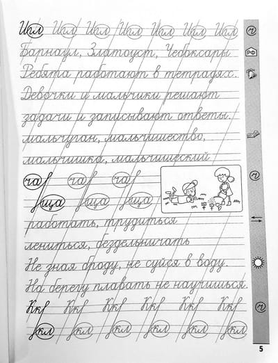 Nepietiekams laiks rokraksta prasmju apgūšanai mācību programmās galvenokārt ietekmē jūsu bērnu rakstītprasmi. Neskaidrības par burtu elementiem, spoguļraksts, izlaidumi un aizstāšana, kā arī nesalasāms rokraksts ir klupšanas akmeņi daudziem jaunajiem skolēniem. Mēs piedāvājam jums palīdzību šīs problēmas risināšanā – unikālu rokraksta trenažieri. Šī nav burtnīca, bet gan rokraksta trenažieris bērniem, kuri jau prot rakstīt. Šis resurss ir paredzēts, lai vispusīgi attīstītu daudzas praktiskas prasmes un iemaņas pamatskolas skolēniem, un mācību materiāli atbilst federālo zemju izglītības standartiem. Tajā pašā laikā mūsu trenažierim ir vairākas atšķirīgas iezīmes. Piemēram, unikāla resursa iezīme ir palīdzība pārejā no viena klades izkārtojuma uz citu, kā arī vecu padomju burtnīcu parauga lapa.