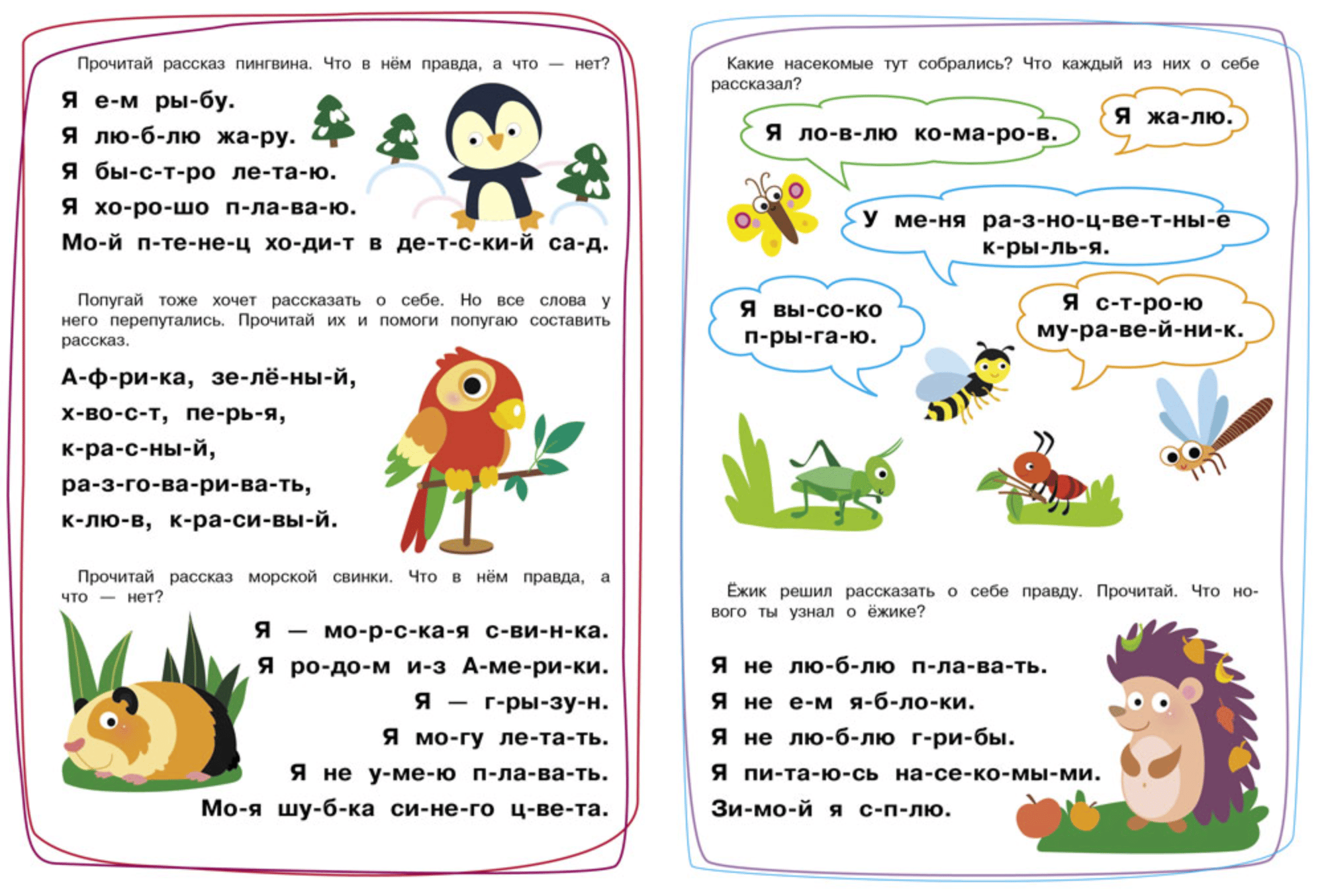 Šī aktivitāte prasa bērniem ne tikai lasīt teikumus un frāzes, bet arī veikt uzdevumus. Tas motivēs viņus lasīt un palīdzēs saprast, kāpēc viņiem ir jālasa — lai apgūtu jaunas lietas. Turklāt uzdevumu veikšana palīdzēs attīstīt viņu runas, loģikas, uzmanības un atmiņas prasmes. Viņi iegūs bagātīgas zināšanas par apkārtējo pasauli un iemācīsies veikt dažādas garīgās darbības, piemēram, salīdzināšanu, analīzi, sintēzi utt. Tādējādi katra aktivitāte ne tikai trenē viņu lasīšanas prasmes, bet arī padara mācību procesu holistiskāku, vienlaikus radot vairākus izaicinājumus, vienlaikus pārvēršot vingrinājumus par jautru spēli.