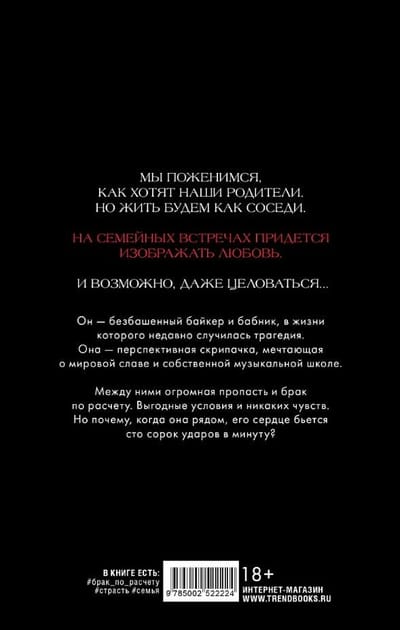 Viņš ir pārgalvīgs baikers un sieviešu pavedējs, kura dzīvē nesen notika traģēdija. Viņa ir daudzsološa vijolniece, kas sapņo par pasaules slavu un savu mūzikas skolu. Starp viņiem un fiktīvu laulību ir milzīga plaisa. Labvēlīgi apstākļi un nekādu jūtu. Bet kāpēc, kad viņa ir blakus, viņa sirds pukst simt četrdesmit sitienus minūtē?