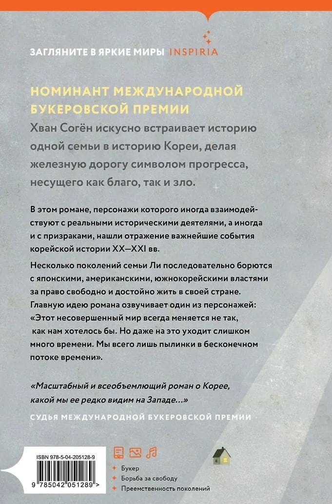 Šis romāns, kura varoņi dažkārt mijiedarbojas ar reālām vēsturiskām personām, bet citreiz ar spokiem, atspoguļo svarīgākos notikumus Korejas vēsturē 20. un 21. gadsimtā.