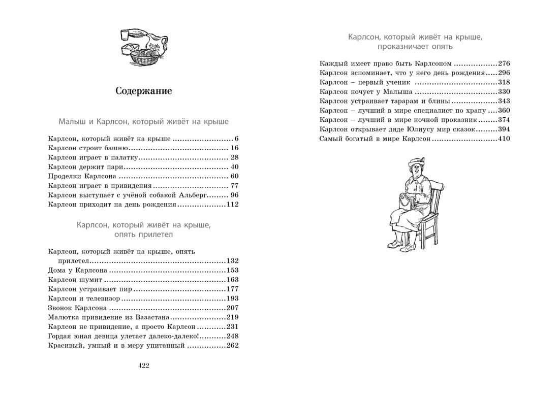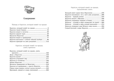 Brīnišķīgās zviedru rakstnieces Astridas Lindgrēnes, daudzu prestižu balvu, tostarp Andersena zelta medaļas, laureātes grāmata par Kādu un Karlsonu, kas dzīvo uz jumta. Šo resno, smieklīgo cilvēciņu ar motoru un propelleri uz muguras pazīst un mīl bērni visā pasaulē. Viņam piemīt nerātns raksturs, un viņš ir iztēles un fantāzijas pilns. Viņš var pārvērst jūsu dienu neziņā, taču nekad nav garlaicīgs, jo viņa devīze ir: "Tev ir jākļūst jautram un smieklīgam, citādi es nespēlēšos!".