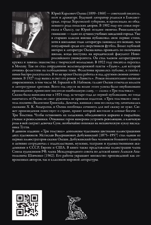 Pasaka tika uzrakstīta tālajā 1924. gadā, četrus gadus pirms pirmās publikācijas, taču Oleša toreiz to nevarēja publicēt: izdevēji nepieņēma manuskriptu. Rakstniece "Trīs resnos vīrus" veltīja Valentīnai Grunseidai. Meitene, kas dzīvoja viņam blakus, dedzīgi lasīja Hansa Kristiana Andersena pasakas, un Oleša apsolīja uzrakstīt viņai ne sliktāku pasaku. Darba sižets vēsta par valsti, kuru pārvalda nežēlīgi un alkatīgi bagātnieki - Trīs resnie vīri. Lai apturētu viņu zvērības, apvienojas cirka mākslinieki un sargi, zinātnieki un amatnieki. Drosmīgie varoņi plāno organizēt revolūciju, un galveno lomu tajā spēlēs meitene Suoka, kura ir neparasti līdzīga mantinieka Tutti mehāniskajai lellei. Šajā izdevumā "Trīs resnie vīri" ir papildināti ar brīnišķīgām krāsu ilustrācijām, ko radījuši divi mākslinieki.