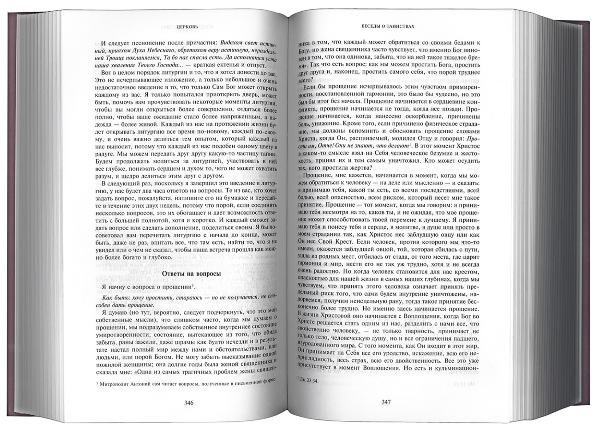 Sūrožas metropolīta Antonija (1914–2003) "Darbu" otrais sējums, kas tagad ir trešajā izdevumā, dziļi iepazīstina lasītāju ar dzīvi saskaņā ar Evaņģēliju un Baznīcas dzīvi mūsdienu pasaulē. Grāmata galvenokārt sastāv no Vladika Antonija runām un sarunām, kas vai nu nekad nav publicētas, vai arī publicētas izdevumos, kas lasītājiem jau sen nav pieejami. Tā ir paredzēta plašam lasītāju lokam. Lai gan otrās grāmatas saturs paplašina un padziļina daudzas pirmajā izvirzītās tēmas, katrs sējums ir patstāvīgs. Grāmatā ir iekļauta plaša metropolīta Antonija darbu bibliogrāfija, komentāri, tematiskais un personiskais rādītājs, kā arī daudzas fotogrāfijas.