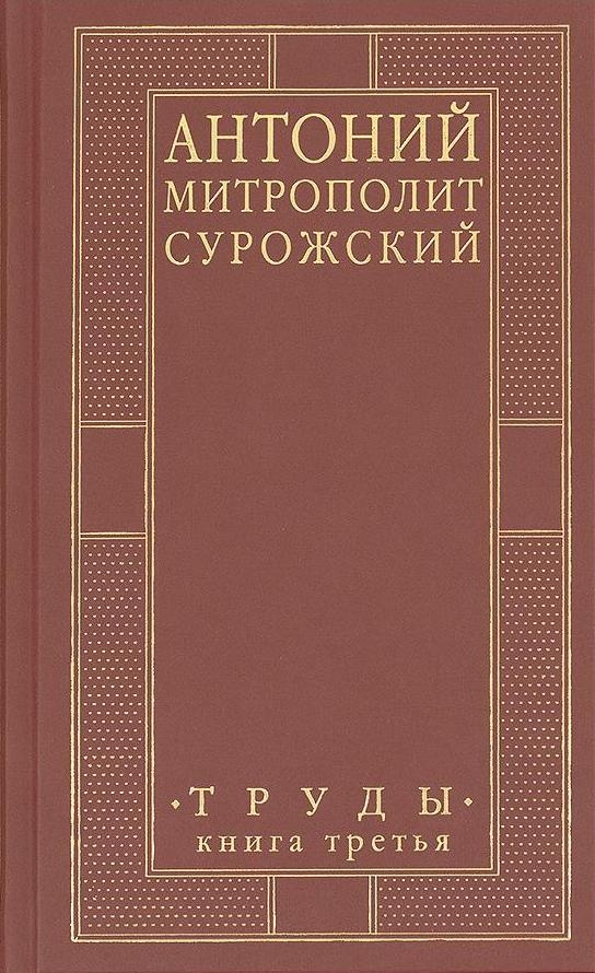 Sūrožas metropolīta Antonija (1914–2003) "Darbu" trešais sējums ir veltīts Baznīcai: tās noslēpumainajai iekšējai dzīvei, tās locekļu savstarpējām attiecībām un attiecībām ar sabiedrību kopumā, kā arī atbildēm, ko Baznīca piedāvā uz ārpasaules jautājumiem. Grāmata galvenokārt sastāv no metropolīta Antonija runām un sarunām, kas publicētas pirmo reizi. Daži teksti tika publicēti izdevumos, kas lasītājam vairs nav pieejami. Grāmata satur plašu metropolīta Antonija darbu bibliogrāfiju, komentārus, tematisku un personālu rādītāju, un tā ir bagātīgi ilustrēta ar fotogrāfijām.