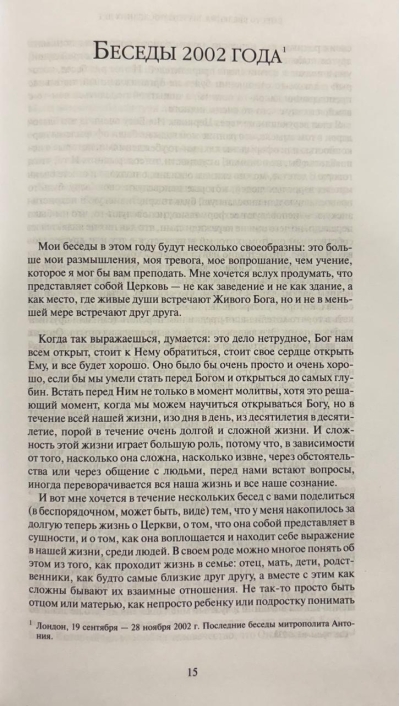 Šī grāmata atspoguļo Vladika Antonija (pēc izglītības ārsta un dabaszinātnieka) domāšanai raksturīgākās tēmas: matērija un gars, dzīvība un nāve, ticība un šaubas, cilvēka attiecības ar Dievu, viņu satikšanās un Dieva ceļš pasaulē. Grāmatā ir iekļauta plaša metropolīta Antonija darbu bibliogrāfija, komentāri, tematiskais un personiskais rādītājs, kā arī daudzas fotogrāfijas.