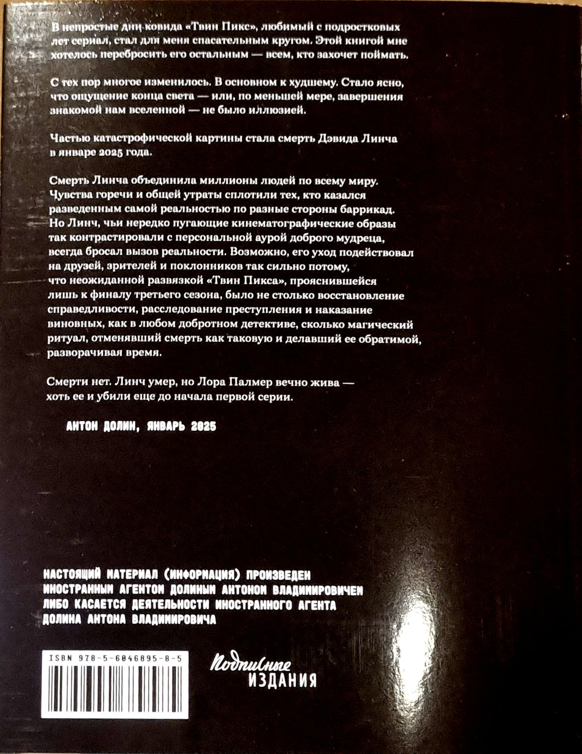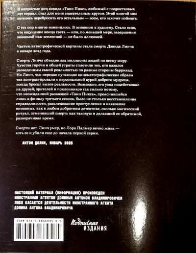 Lūk, ceļvedis pa "Twin Peaks" – nelielu noslēpumainu pilsētiņu uz robežas, kur tiek izšķirts visas pasaules liktenis, un "Twin Peaks" – radikālu, inovatīvu Deivida Linča un Marka Frosta televīzijas seriālu. Kinokritiķis Antons Dolins, kura gaume, uzskati un dzīves stratēģija savulaik veidojās, saskaroties ar "Twin Peaks", atkārtoti noskatās savu iecienītāko seriālu, pārdomā to epizodi pēc epizodes, nodaļu pēc nodaļas, iedziļinās tā visumā un aicina lasītāju/skatītāju sekot viņam.