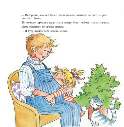 Connie ģimene gaida jaunu mazuli. Un Konijai ir daudz jautājumu un raižu. Kur bērns gulēs? Kas notiks ar viņas rotaļlietām? Vai viņai būs atļauts rūpēties par mazuli? Un pats svarīgākais - vai viņas mamma tagad viņu iemīlēs? Konijas jaunās dzīves stāsts ir lielisks veids, kā atbildēt uz bērna jautājumiem par to, no kurienes nāk bērni, un kliedēt viņa bailes un šaubas.