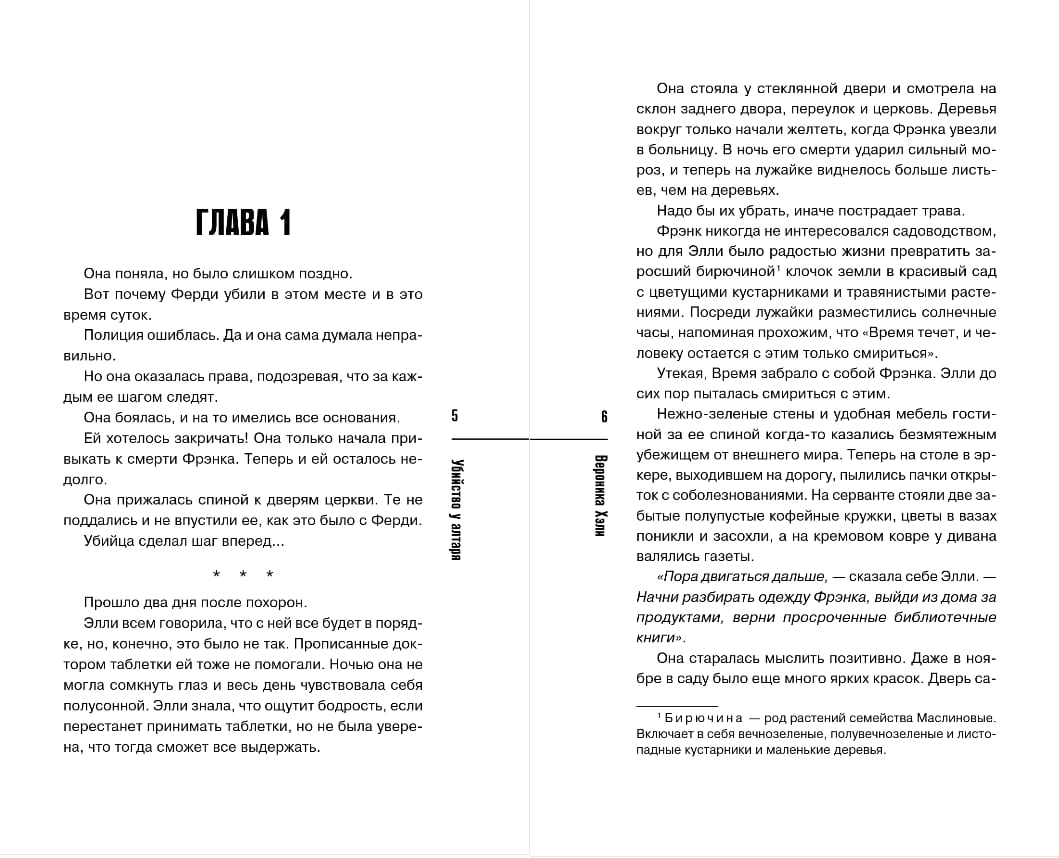 Vienā lapu koku ieskautā Londonas rajonā visi pazīst Elliju Kviku no labdarības veikala. Nesen palikusi atraitne, viņa pavada dienas, skatoties ārā pa logu. Līdz vienam vakaram Douzas kundze, kuru nav viegli apbēdināt, burtiski iebrāžas Ellijas mājā. Bet tam ir labs iemesls — līķis baznīcas altāra priekšā...