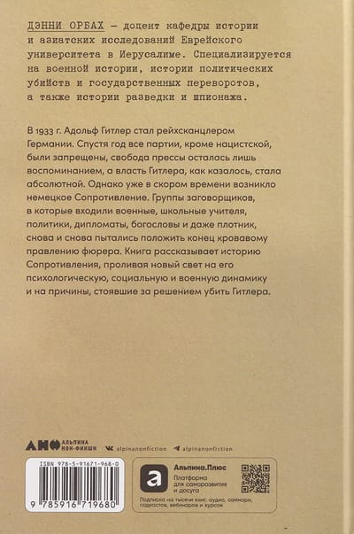 1933. gadā Ādolfs Hitlers kļuva par Vācijas kancleru. Gadu vēlāk visas partijas, izņemot nacistu partiju, tika aizliegtas, preses brīvība bija tāla atmiņa, un Hitlera vara šķita absolūta. Tomēr drīz vien parādījās vācu pretošanās kustība. Sazvērnieku grupas, tostarp karavīri, skolotāji, politiķi, diplomāti, teologi un pat galdnieks, atkārtoti mēģināja izbeigt fīrera asiņaino valdīšanu. Šī grāmata stāsta par pretošanos, sniedzot jaunu ieskatu tās psiholoģiskajā, sociālajā un militārajā dinamikā, kā arī par iemesliem, kas bija aiz lēmuma nogalināt Hitleru. Balstoties uz konkrētiem novērojumiem, autors izdara vispārīgākus secinājumus: kāpēc daži cilvēki izvēlas aktīvu pretošanos, neskatoties uz mirstīgo risku, bet citi to nedara? Kurš, visticamāk, kļūs par pretošanās kustības cīnītāju? Un ko mēs varam uzzināt par sarežģītajiem un mainīgajiem motivācijas faktoriem, kas cilvēkus virza uz šī ceļa?
