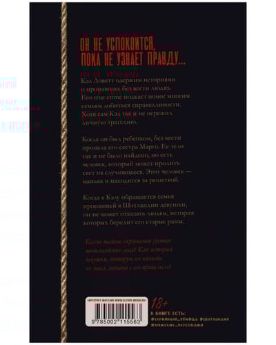 Viņš neatlaidīsies, kamēr neuzzinās patiesību... Kols Lovets ir apsēsts ar pazudušu cilvēku stāstiem. Viņa patiesu noziegumu podkāsts ir palīdzējis daudzām ģimenēm panākt taisnīgumu. Taču pats Kals nekad nav piedzīvojis personisku traģēdiju. Bērnībā pazuda viņa māsa Margo. Viņas līķis tā arī netika atrasts, taču ir cilvēks, kurš var noskaidrot notikušo. Šis cilvēks ir maniaks un atrodas aiz restēm. Kad pie Kala vēršas Skotijā pazudušās meitenes ģimene, viņš nespēj atteikt cilvēkiem, kuru stāsts uzjundī viņa vecās brūces. Kādus noslēpumus slēpj blīvi Skotijas meži? Kā stāsts par meiteni, kuru viņš nekad nav pazinis, ir saistīts ar viņa pagātni?"