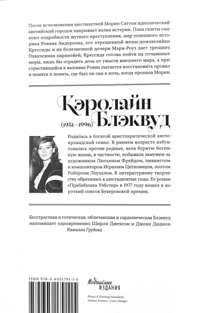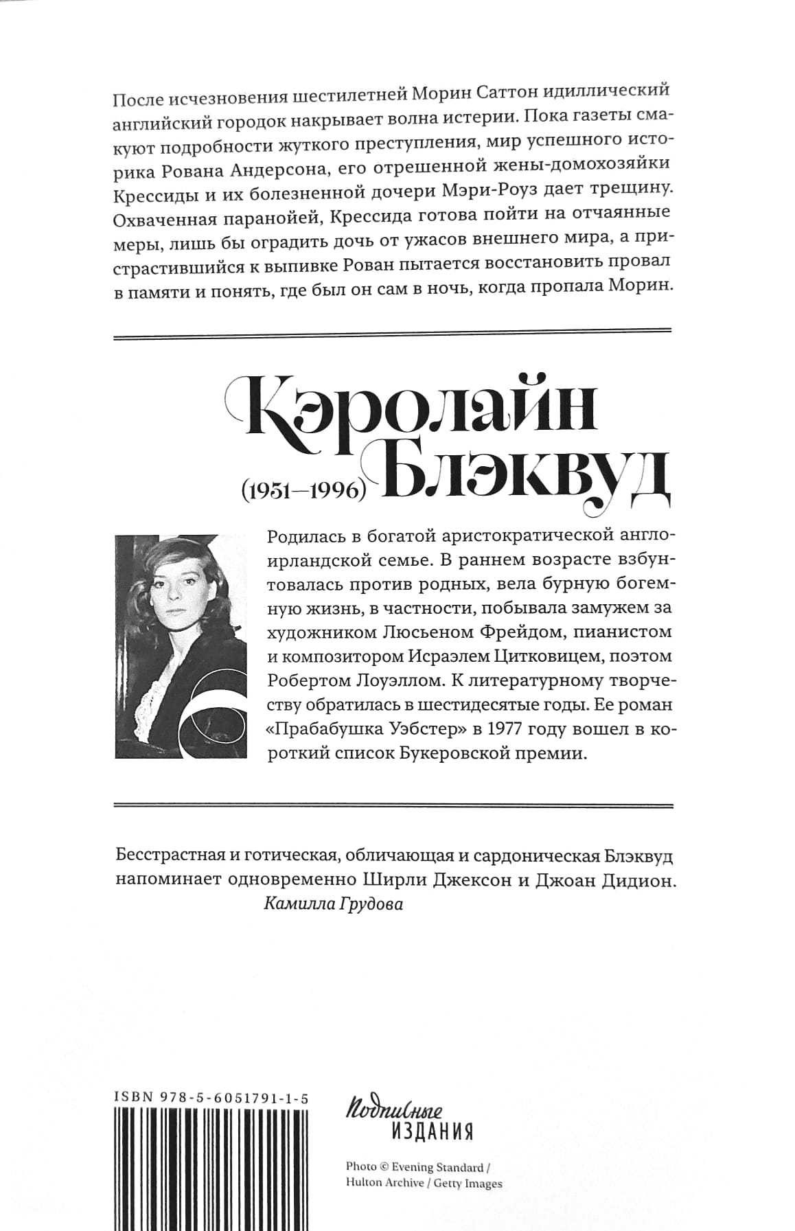 Karolīna Blekvuda (1931–1996) piedzima turīgā, aristokrātiskā anglo-īru ģimenē. Jau agrā bērnībā viņa sacēlās pret savu ģimeni un dzīvoja nemierīgu, bohēmisku dzīvi, tostarp apprecējās ar mākslinieku Lusjanu Freidu, pianistu un komponistu Izraēlu Citkovicu un dzejnieku Robertu Lovelu. Literārajai daiļradei viņa pievērsās 20. gs. sešdesmitajos gados. Viņas romāns "Vecmāmiņa Vebstere" tika iekļauts Bukera balvas īsajā sarakstā 1977. gadā.