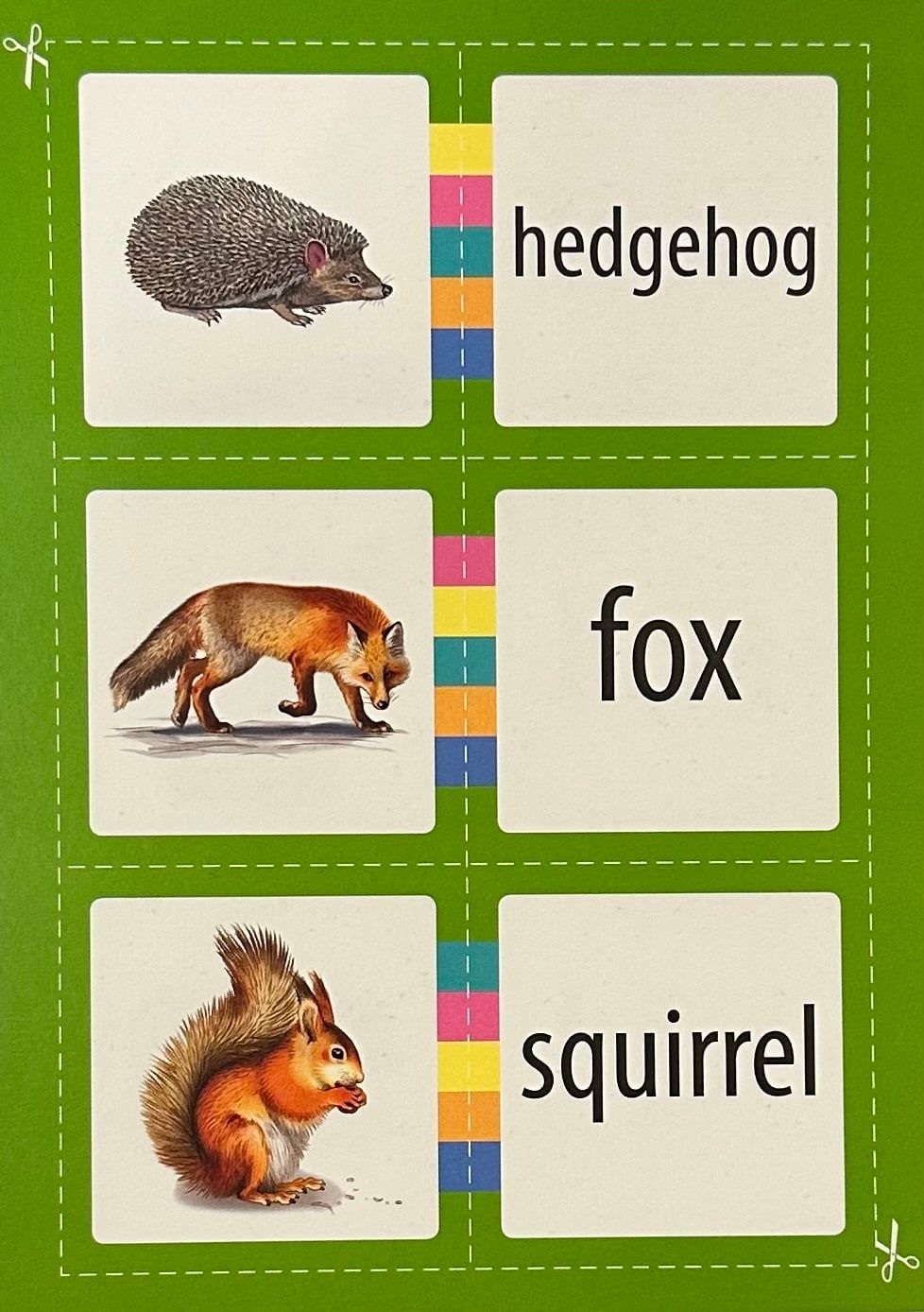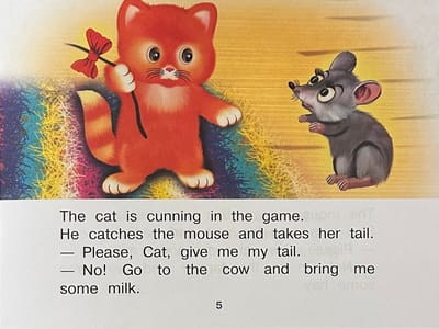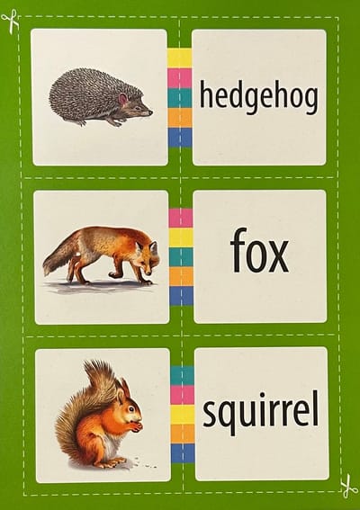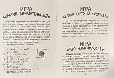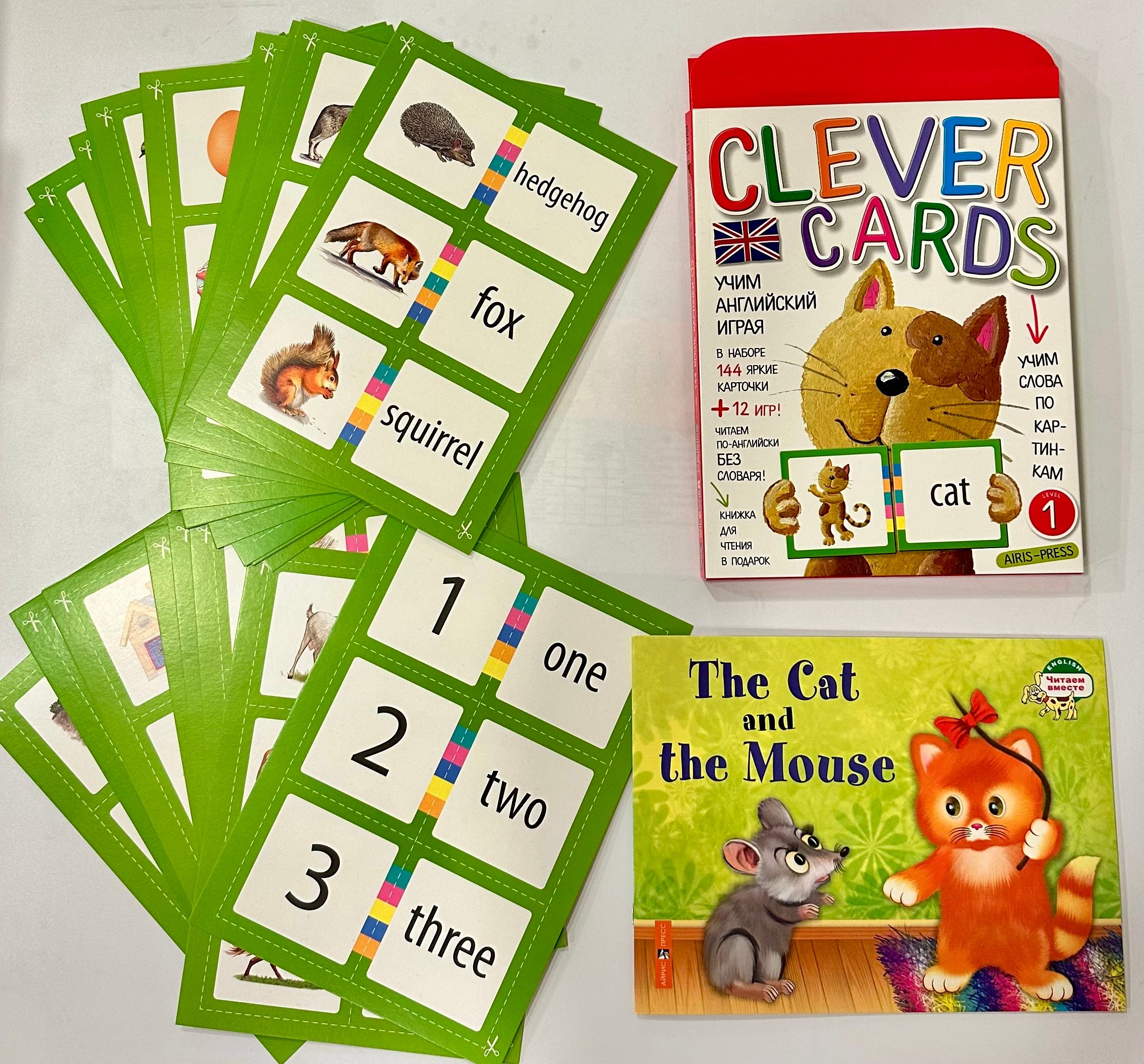 Komplektā ietilpst arī grāmata ar košiem attēliem un pasaku "Kaķis un pele". Iemāciet vārdus un mēģiniet to izlasīt, nelietojot vārdnīcu. Grāmatas aizmugurē ir pievienota vārdnīca gadījumam, ja nepieciešams.