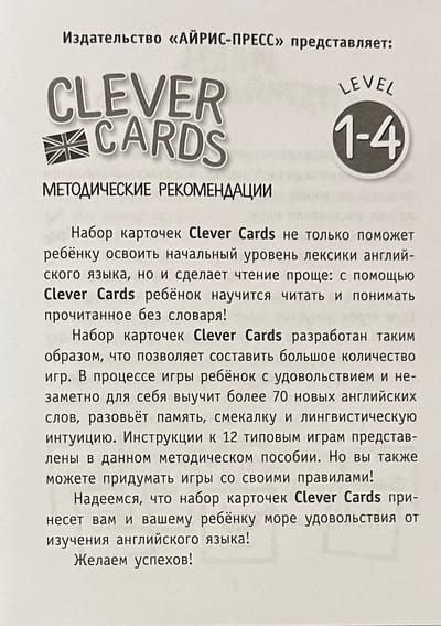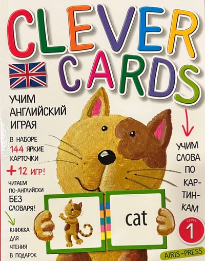 Pretinošas kartes. 1. līmenis" palīdzēs jūsu bērnam ātri un ar prieku apgūt nozīmīgu sākumskolas vārdu krājuma daļu un iemācīties lasīt angļu valodas tekstus bez vārdnīcas. Komplektā ir 144 koši krāsainas kartītes un 12 dažādas grūtības pakāpes spēles. Katram attēlam ir pāra karte ar nosaukumu. Uz visām kartītēm ir krāsu atslēga, ar kuras palīdzību bērns var pārbaudīt, vai ir atradis pareizo vārdu. Pateicoties skaidrajām instrukcijām, pieaugušie var viegli padarīt nodarbības ar bērnu interesantas un efektīvas.