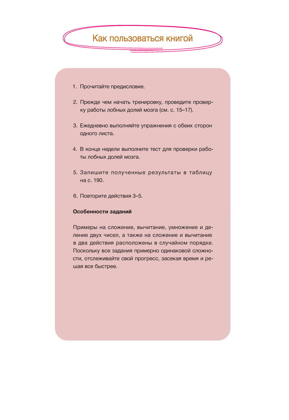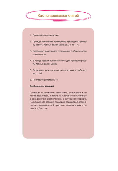 Šī darba burtnīca turpina atmiņas un intelekta attīstīšanas grāmatu sēriju "Smadzeņu treniņš" un satur saskaitīšanu, atņemšanu, divu skaitļu reizināšanu un dalīšanu, kā arī saskaitīšanu un atņemšanu divās operācijās.
