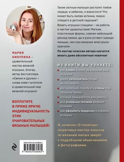 Burvīgi mazuļi, gandrīz kā dzīvi! Kaķēns, kas guļ bērna plaukstā, vai maza kaija sarkanā šallē - tamborētas rotaļlietas ir bezgalīgi mīļas un liek smaidīt! Vesels saiņotu dzīvnieku krājums jūs gaida Marijas Ņikuļinas jaunajā grāmatā, kas šoreiz veltīta miniatūrām.