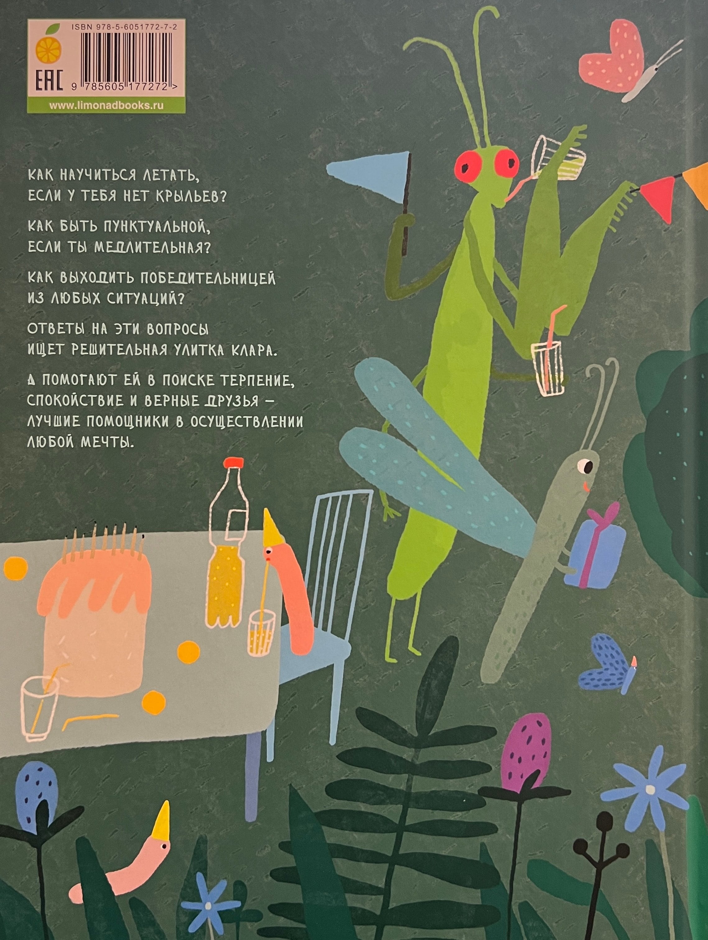 Apņēmīgā gliemezis Klāra meklē atbildes uz šiem jautājumiem. Un meklējumos viņai palīdz pacietība, mierīgums un lojāli draugi – labākie palīgi jebkura sapņa piepildīšanā.