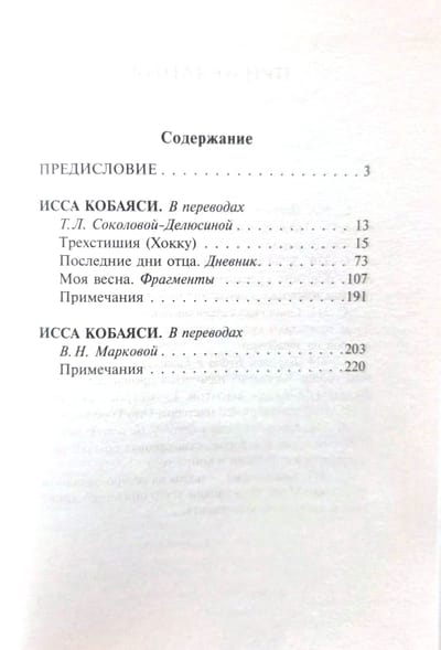 Šajā izdevumā iekļauti Issa labākie haiku, kā arī fragmenti no viņa prozas grāmatas "Mans pavasaris" un dienasgrāmatas "Tēva pēdējās dienas" — aizkustinošas un smeldzīgas hronikas par Issa rūpēm par savu mirstošo, smagi slimo tēvu.