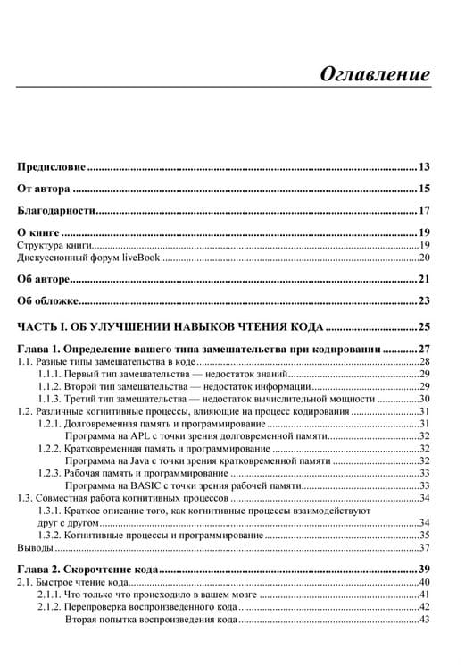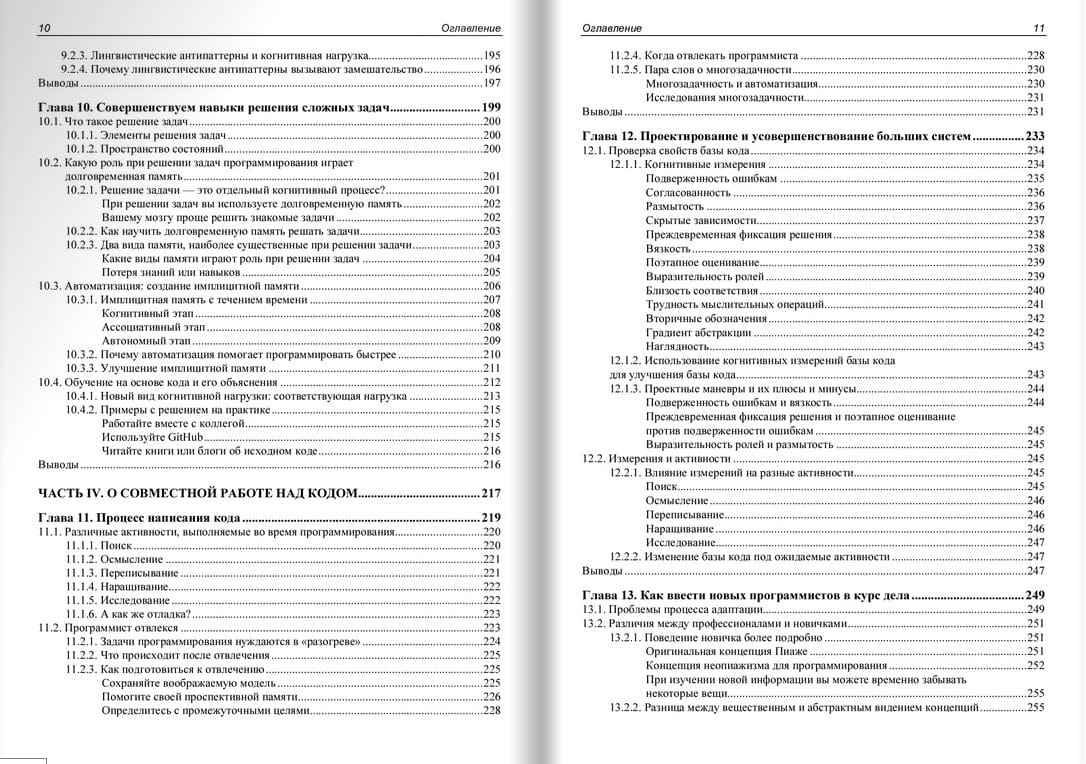 Grāmatā aplūkoti kognitīvās zinātnes praktiskie pamati programmētājiem. Galvenie temati ir: citu un sava koda izpratne un attīstīšana, jaunu programmēšanas valodu apguve, mnemonikas metodes programmētājiem, koda uzturēšana lasāmā stāvoklī. Skaidrots, kā samazināt kognitīvo slodzi, strādājot par programmētāju, kā padarīt kodu loģisku un saprotamu sev un kolēģiem. Tiek aplūkotas funkciju, klašu un mainīgo nosaukumu piešķiršanas tehnikas, krātuvju uzturēšanas pieejas, kopīga izstrāde un koda pārskatīšana.