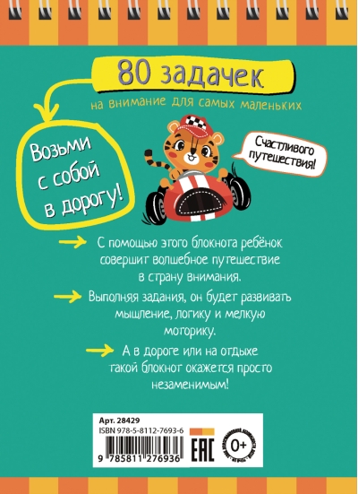 Atverot šo piezīmju grāmatiņu, jūsu bērns nonāks maģiskā uzmanības pārbaudes mīklu zemē. Bruņojies ar zīmuli, viņš meklēs atšķirības attēlos, pazaudētus priekšmetus un paslēptus dzīvniekus, attīstot uzmanību, smalko motoriku un domāšanas prasmes. Mazie var izmantot pirkstus, lai norādītu atbildes. Šī piezīmju grāmatiņa ir neaizstājama ceļā vai atvaļinājumā. Piemērota bērniem no 3 gadu vecuma.