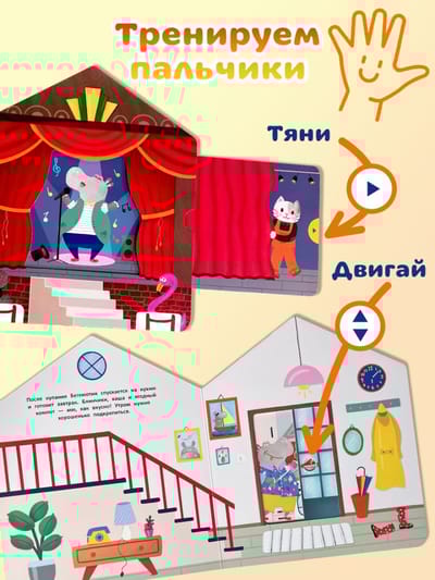 Šī interaktīvā grāmata-rotaļlieta ir pilna pārsteigumu: jūsu mazais var izpētīt katru mājas istabu un atklāt, ko patīk darīt draudzīgajam īpašniekam. Viņš var arī atvērt skapi, izvēlēties apģērbu un uzaicināt draugus uz koncertu.